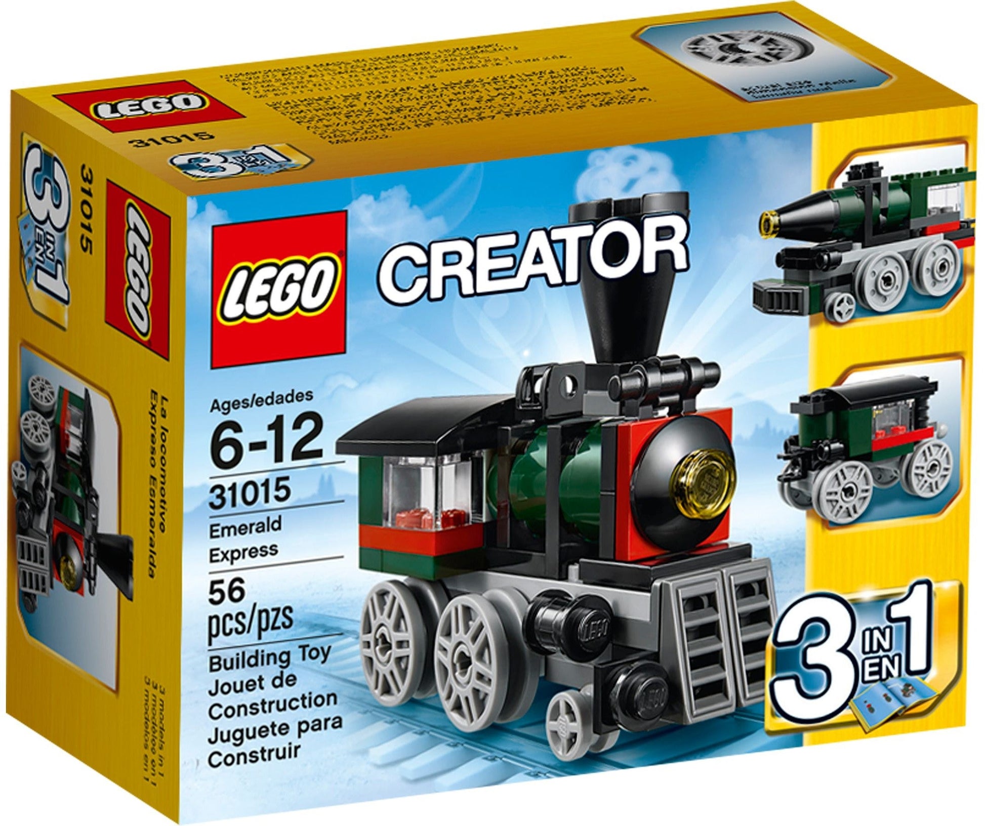 Full steam ahead! The exciting and colourful Emerald Express steam train is packed with detail, from the old-fashioned funnel to the driver’s cab and the bars at the front that push cows out of its way. Moo! When it’s time for a change, you can rebuild it into a fast rocket train or a carriage. Combine with additional Emerald Express sets to create an even longer train!