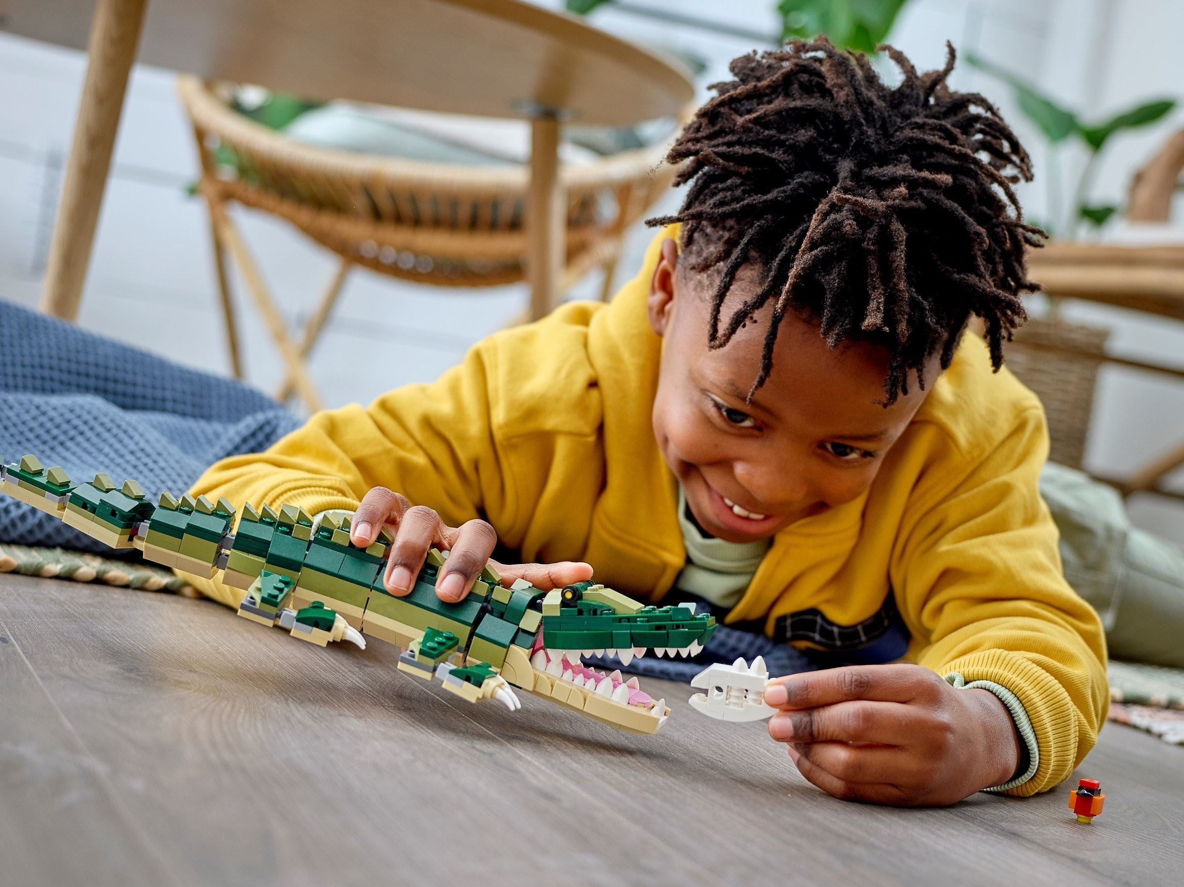 Wild animal toys inspire imaginative playThe fun lasts longer with 3 awesome animal toys for kids to create in this LEGO Creator 3in1 set. They can build a posable crocodile, rebuild it into a snake with a moving body, transform it into a frog with an extending tongue, or fire up their imaginations to make a different creature.