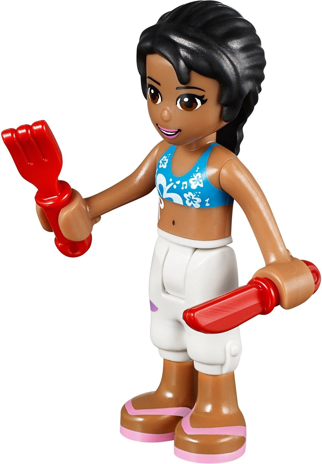Head off on a summer camping trip with the LEGO® Friends! Olivia and Joanna have a brand new car and caravan and are looking for the perfect spot outside Heartlake City to set up camp in the sunshine. Help them prepare a delicious lunch on the camping stove and sit down to eat at the table and chairs. Sit back and admire the beautiful view while saying hello to the friendly hedgehog. Then wash the dishes before setting up the sunbeds and switch on the MP3 player for an afternoon of sunbathing—don't forget to make sure everyone is wearing sunscreen. Freshen up in the shower, then settle down for the night, but not before sharing some secrets by lamplight!
