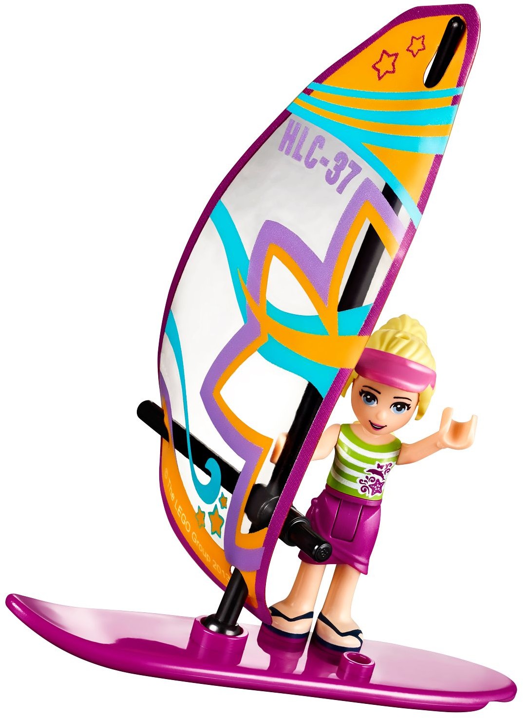 Open the door to Stephanie’s Beach House! Stephanie and Kate have come here for the weekend. Take Kate up to the terrace while Stephanie heads out on the windsurfer. Later, it’s time to watch some TV, listen to the latest hits on the radio and prepare dinner in the kitchen. Convert the sofa into a bed and get ready for a cozy night in – and lots more adventures tomorrow! Includes Stephanie and Kate mini-doll figures.