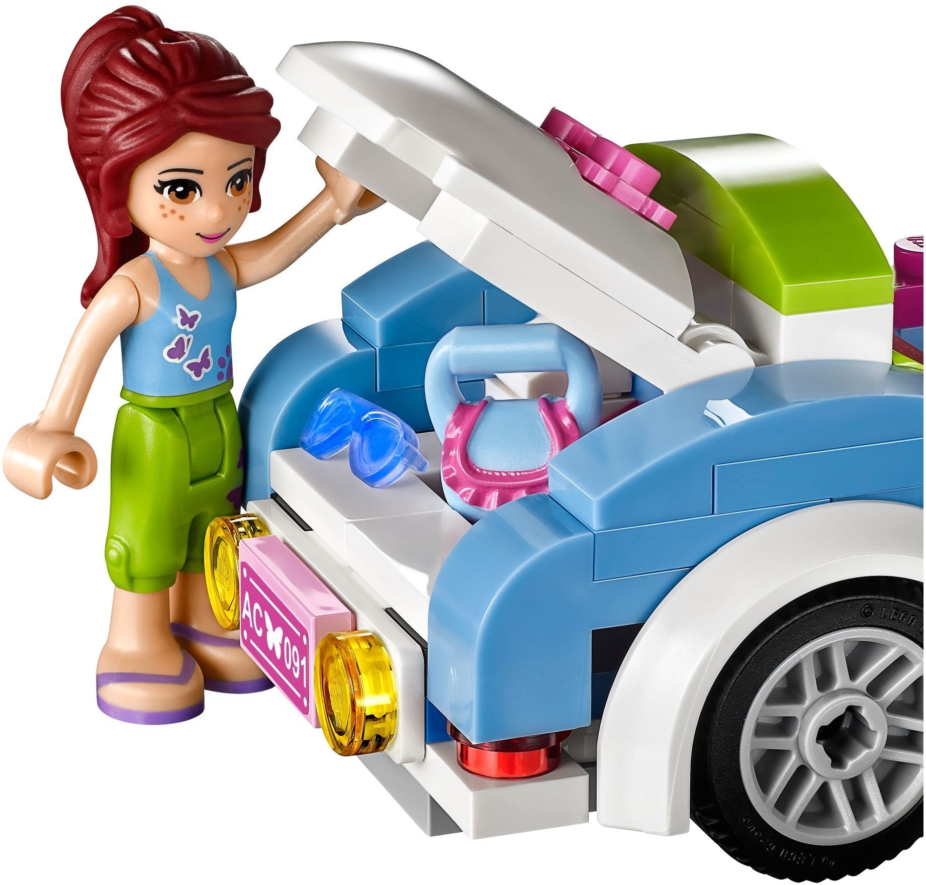Get out and about with Mia in her funky blue Roadster. It’s a beautiful day in Heartlake City, so Mia puts on her shades and heads off to meet her friends. But first, head to the gas station to fill up with special eco-fuel. Top up the oil and check the car over with the tools at the repair stand, then help Mia wash her car to make it super shiny. Put her handbag in the trunk, and she’s ready to hit the road again! Includes a Mia mini-doll figure.