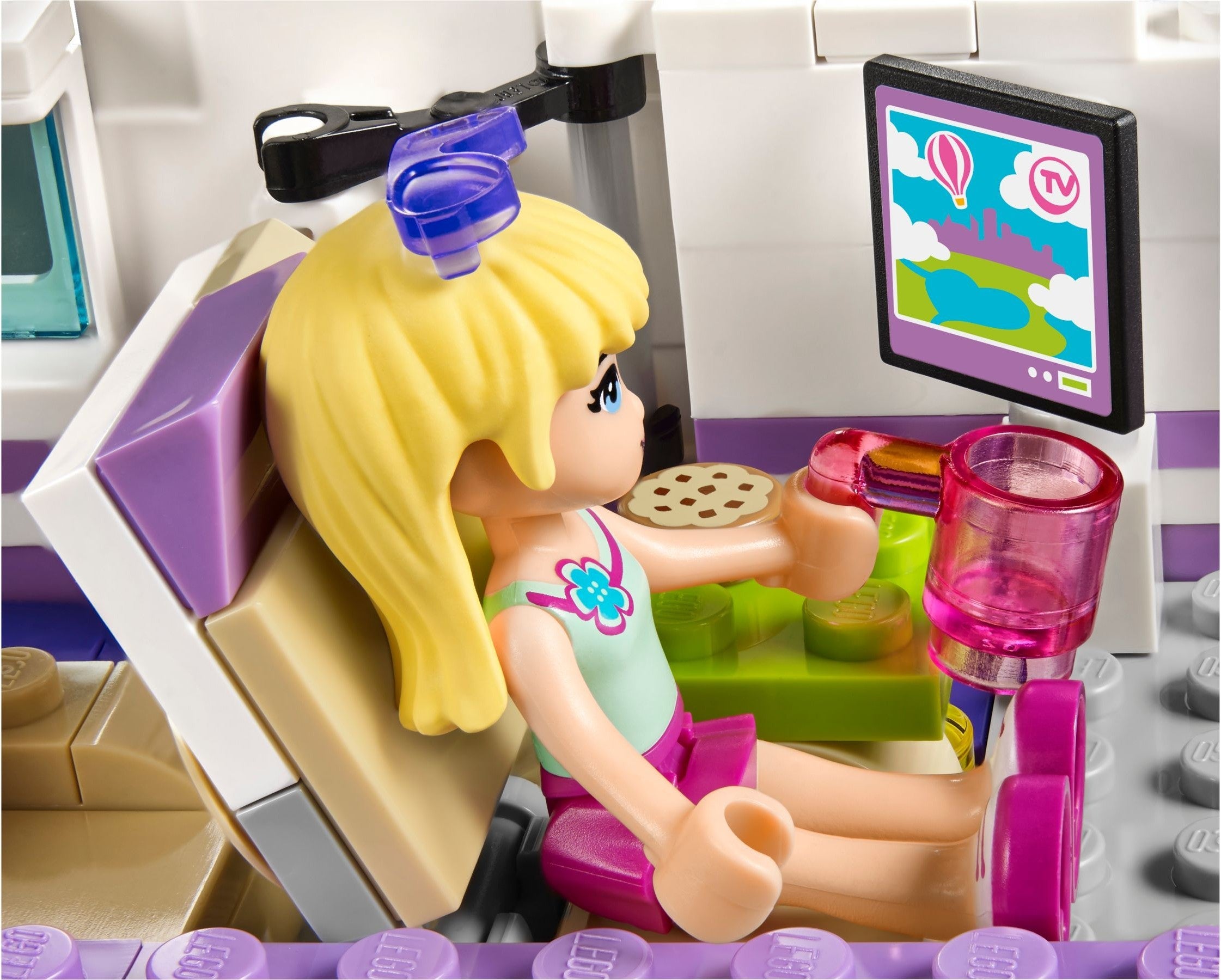 Jet off on an exciting vacation with Heartlake Airlines! Help Stephanie check in her luggage at the LEGO® Friends Airport and place it on the turning cart while flight attendant Sandra gives her the boarding pass. Then head to the duty-free store to buy some perfume and go upstairs to the cafeteria while you wait for the flight to be called. Then it’s time to board the big plane! Place the rolling staircase at the aeroplane door and help Stephanie find her reclining seat while the luggage is loaded in the back of the plane. Make the final cockpit checks before takeoff with David the pilot, and once you’re flying high, prepare freshly made coffees and snacks in the galley with Sandra. Then push the trolley down the aisle to serve the passengers. Settle down with Stephanie to watch a movie while she enjoys her meal and then freshen up in the bathroom before everyone takes their seats for a smooth landing. Includes 3 mini-doll figures: Stephanie, pilot David, and flight attendant Sandra.