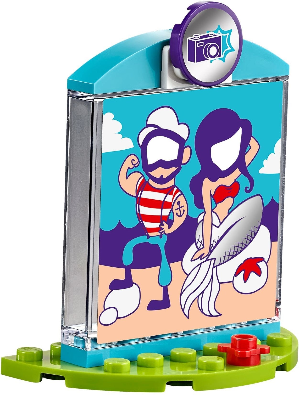 Stephanie's cool hot dog van has a seating area on the roof with the best view of the amusement park! Dress Nate up as a giant hot dog to drum up business, put sausages on the grill, and pop them into buns to feed the hungry customers. Have some fairground fun taking pictures as Stephanie puts her face through the carnival cut-out boards nearby. And there's a crazy distorted mirror for even more giggles!