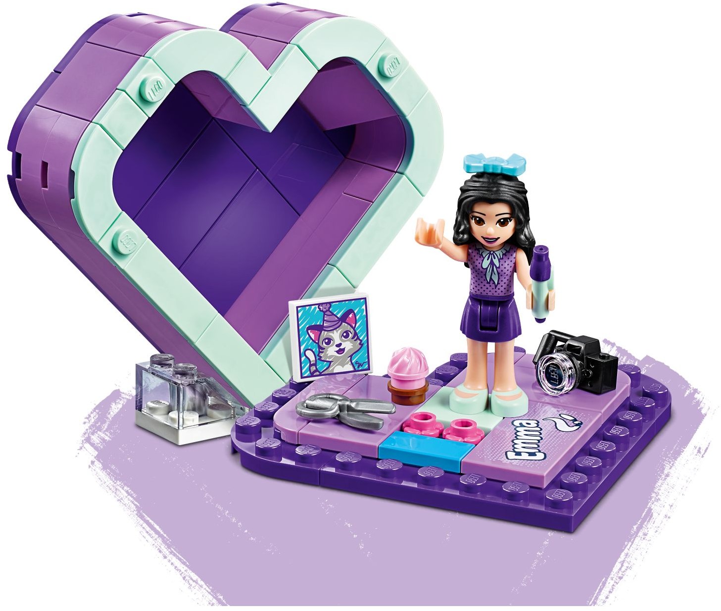 LEGO® Friends 41355 Emma’s Heart Box is the perfect gift for creative types. LEGO Friends Emma loves to make things and all the items in her heart-shaped box reflect her arty character, such as a camera, drawing pad and art pen. She also carries a pair of scissors so she is ready to customize clothing wherever she goes. This collectible toy is a true travel set, as every element fits into the heart box and the keeps all the pieces together. Remove the lid and use it as a platform so Emma stands securely—perfect for kids’ role play on the go! Includes an Emma mini-doll figure.