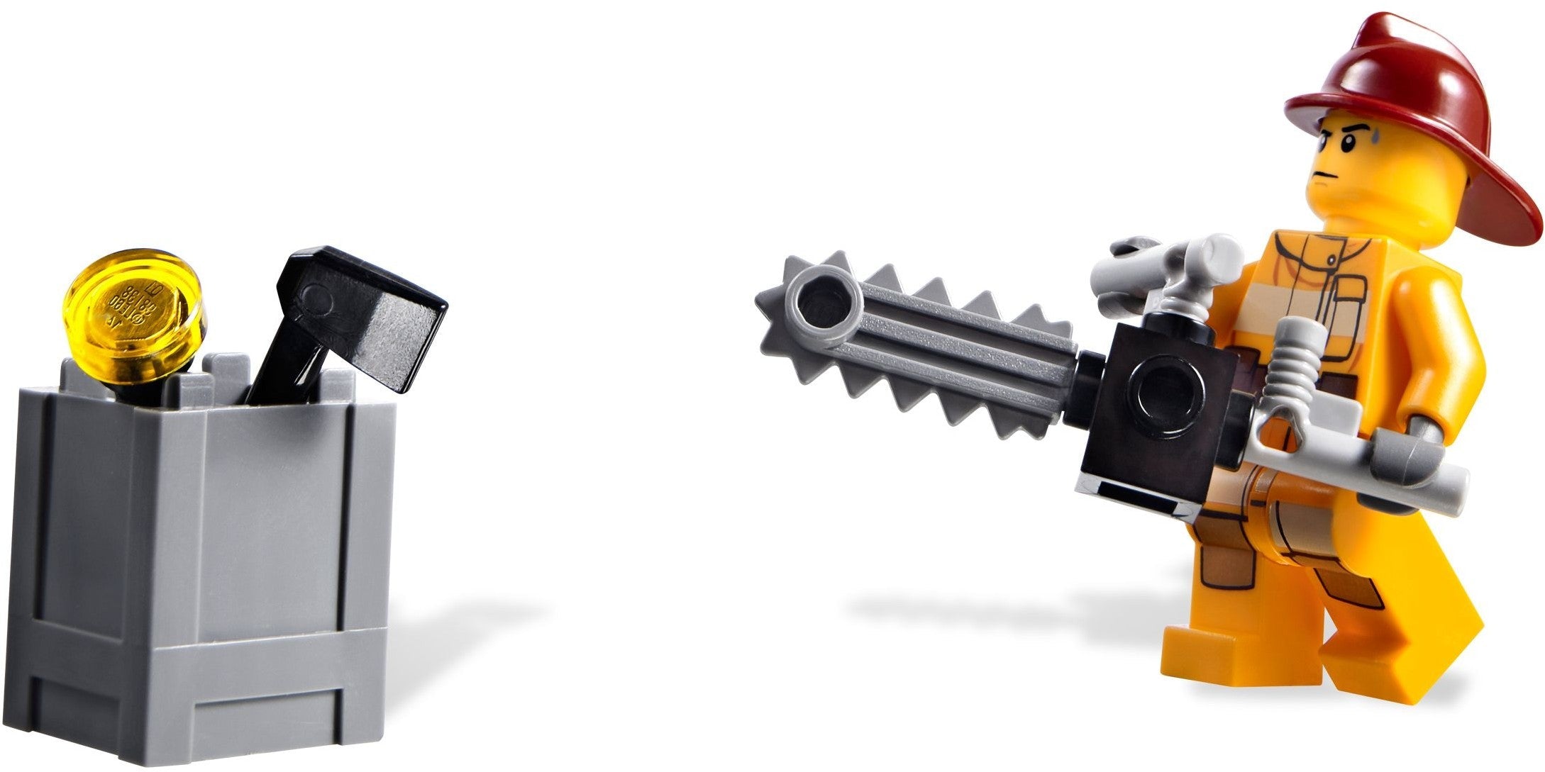 Keep the forest fire under control! Drop the water from the plane over the trees, deploy the rugged off-road fire truck with trailer, and make sure this fire doesn’t spread out of control! Includes 3 minifigures: 2 pilots and a firefighter.