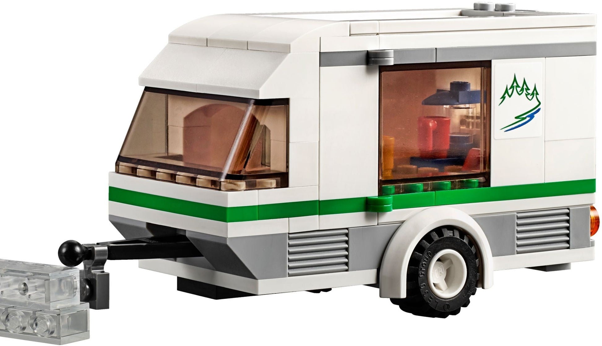 Get ready for vacation time! Pack up the grill and food, and remember the dog’s bone. Bring the coffee maker and drive to the campground in your van, hauling your caravan. Set up the caravan and get ready for fun! Summer camping is great in LEGO® City!