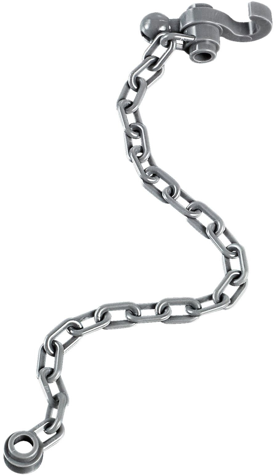 • Crooks’ bulldozer features a front blade plough, moving tracks, chain, and a hook.