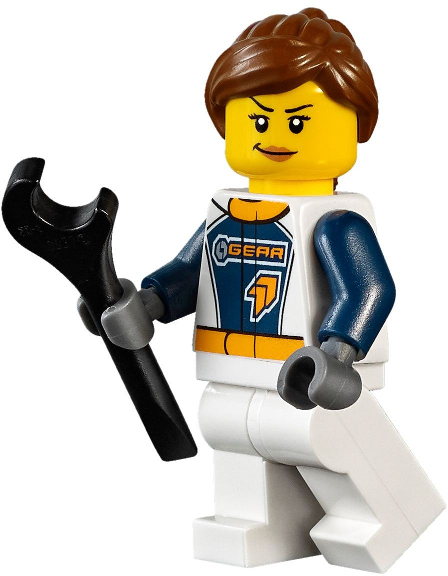 Join the racing crowd with the LEGO® City Dragster Transporter, featuring a transporter truck with detachable trailer, a dragster with an extended wing, flames coming from the engine, and a light signal. Includes two minifigures.