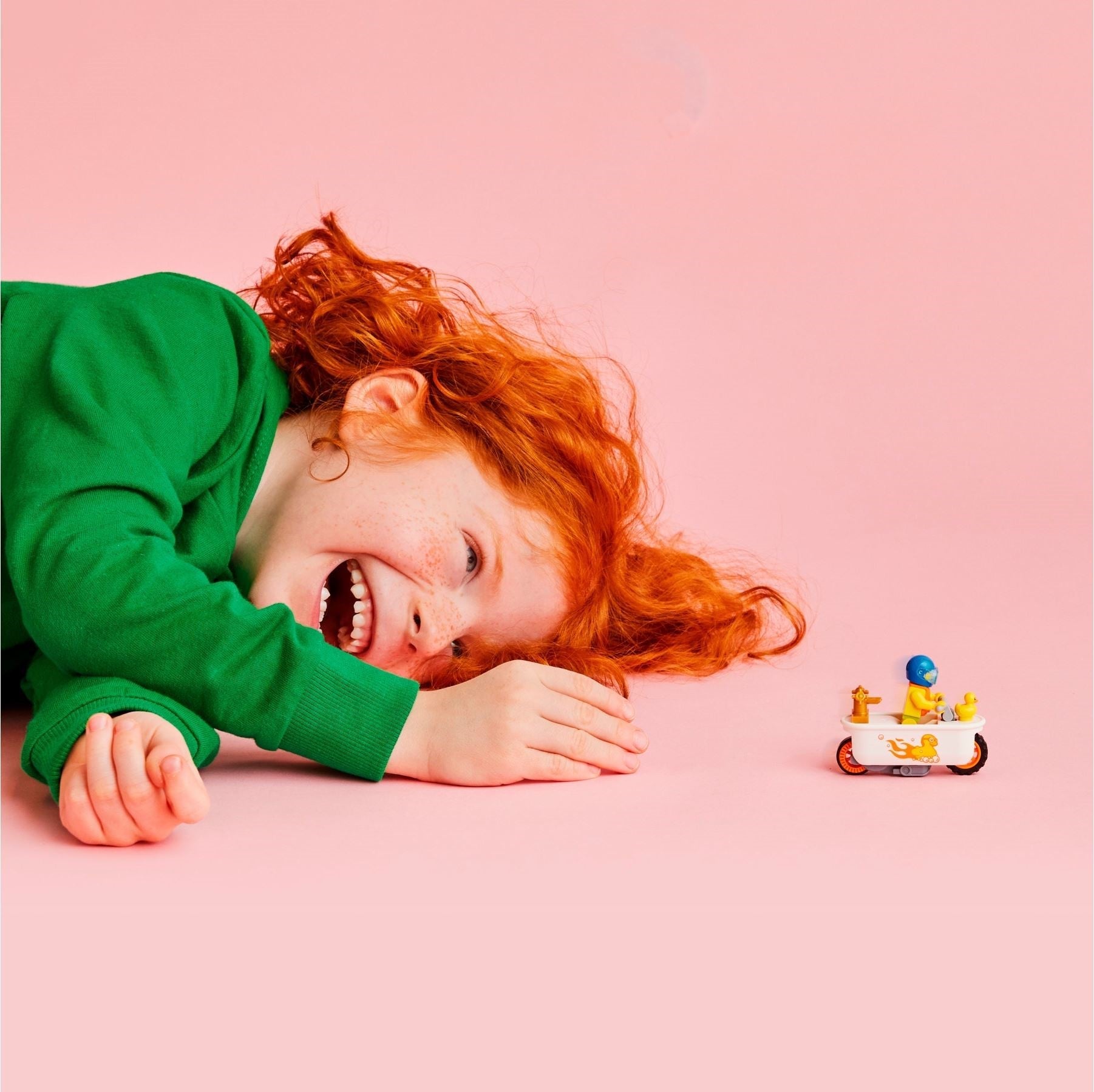 Shift kids’ play up gear with the LEGO® City Bathtub Stunt Bike (60333) playset, featuring a flywheel-powered bathtub motorbike for performing amazing stunts. Just add the LEGO City Stuntz character Sudsy Simon Tub Racer, complete with his toy bath duck, snorkel, and life jacket for high-flying bathtub stunt-show fun!