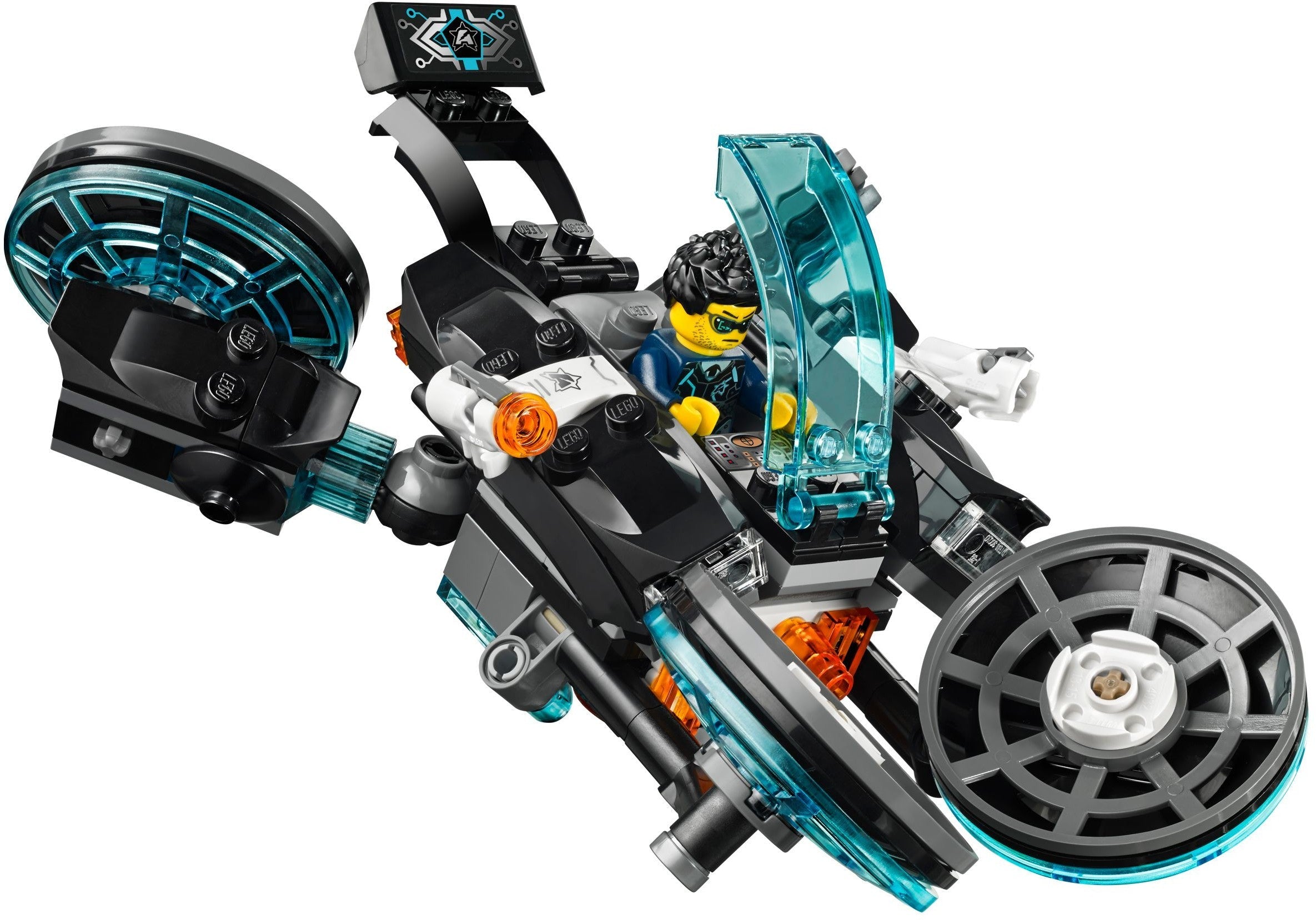 Urgent call for Ultra Agent Steve Zeal! Invizable has broken into Central Bank and is escaping with the safe and valuable gold bars inside. Jump into the cockpit of the super-cool Stealth Bike and speed through the city streets to intercept him. When you spot the safe chained to the Invizable flyer, flip the wheels into ultra-hover mode and give chase. Fire the stud shooters and bring down the unseen villain before he converts his flyer into an aqua jet and takes the pursuit to the water. Then play out other thrilling digital missions on your tablet using your AppBrick gadget with 2 AppBricks! Includes 2 minifigures: Ultra Agent Steve Zeal and Invizable with a weapon.