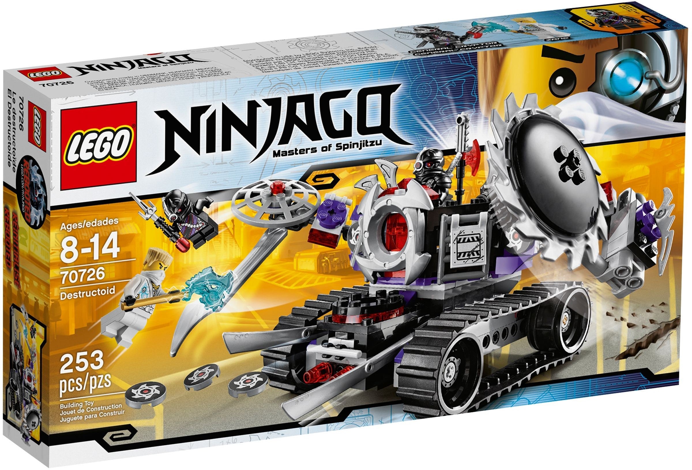 Zane faces an almighty battle to stop the Nindroids from taking the precious Techno-Blade. From the 360-degree rotating command centre of their menacing Destructoid mech, General Cryptor and Mindroid—the miniature Nindroid—activate the front chopping blades and prepare to attack with the powerful disc shooter and mighty mech arms with massive swords, shields, and extendable spinning saw blades. Help the brave Ninja dodge the advancing Destructoid and escape to safety! Includes 3 minifigures with weapons and accessories: Zane, General Cryptor, and Mindroid.
