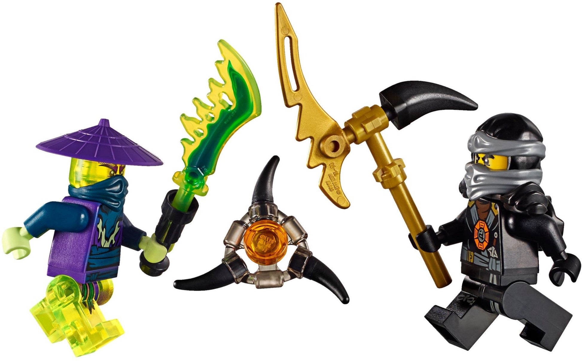 Ride Cole’s Blaster Bike into battle and protect the Aeroblade! The Ghost Warrior Cowler is armed with a deadly Ghost Blade Sword and is launching an aerial attack on a Ghost Dragon. Fold out the awesome dual six-shooting rapid shooters to take down the flying beast. Speed away from the pair of Skreemers trying to turn Cole into a ghost, and don’t let them get their hands on the Aeroblade! Includes 2 minifigures with assorted weapon elements and an accessory element: Cole and Ghost Warrior Cowler.