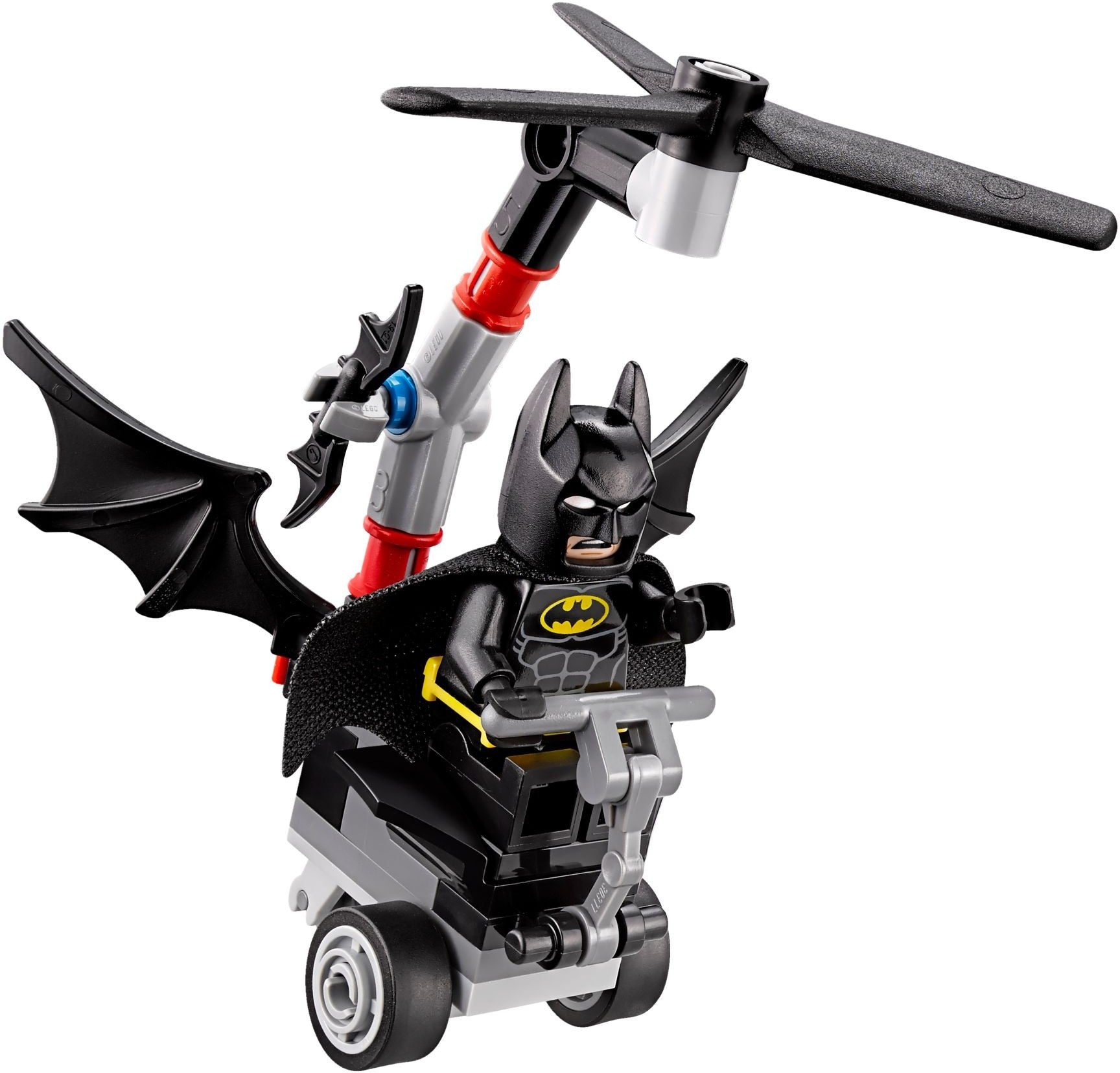 Stop Bane™ and Mutant Leader’s toxic attacks with Batman™ in this exciting THE LEGO® BATMAN MOVIE: Bane™ Toxic Truck Attack set, including Bane’s Toxic Truck, Batman’s Whirly-Bat flyer, and a toxic waste mini-build with explode function. The 6-wheel truck features rear 4-wheel suspension and a mounted 6-stud rapid shooter and detachable toxic tank element. Includes 2 minifigures, a big figure, and assorted play-inspiring weapons and accessory elements, including Batman’s Batarang, the Mutant Leader’s torch, and Bane’s Venom backpack.