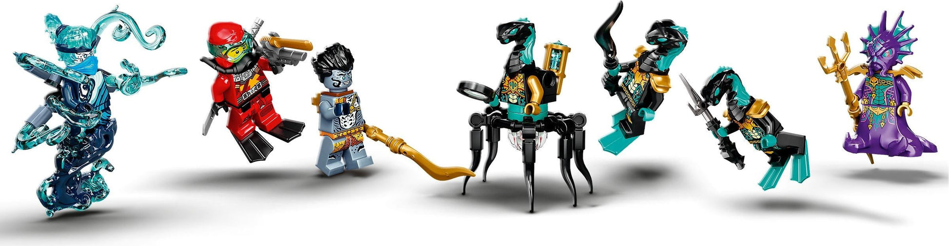 Includes 7 minifigures: Scuba Kai, NRG Nya, Glutinous, Prince Kalmaar, Prince Benthomaar and 2 Maaray Guards to give kids all they need to stage death-defying battles under the sea.