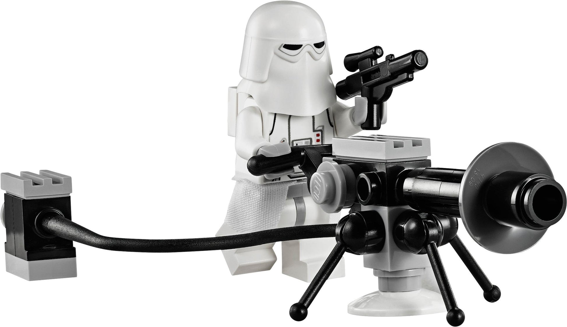 Lead the Rogue Squadron with Luke SkywalkerTM in the streamlined SnowspeederTM! Place him and gunner Dak RalterTM in the dual cockpit with their weapons and attack with the spring-loaded shooters hidden under each wing. Target the Imperial SnowtrooperTM with the rear stud blaster or convert it to fire the harpoon hook and take down the 75054 AT-ATTM (sold separately). Then take the action to the ground with the tripod gun. Recreate the classic Battle of Hoth from Star Wars: Episode V: The Empire Strikes Back!