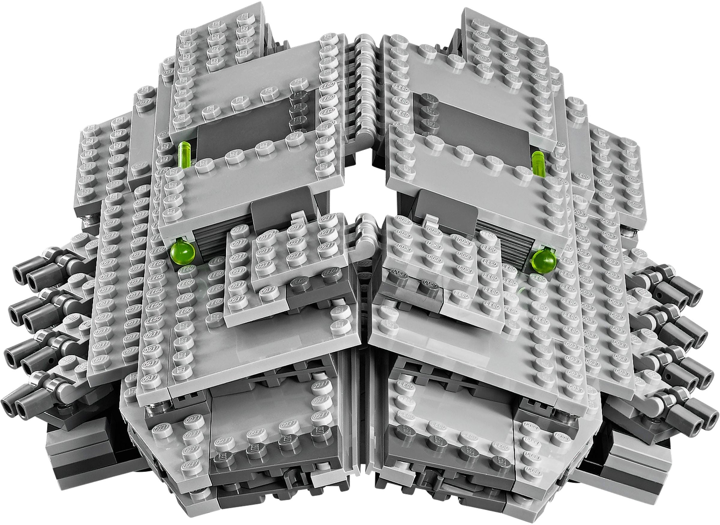 • Features a lifting handle, removable top and fold-down sides for easy play, 8 synchronized turning cannons, 2 spring-loaded shooters, storage compartment for 2 spare missiles, 7 powerful blue engines, and a detailed interior including rotating Emperor Palpatine hologram, rotating chairs, turning weapon rack, bridge, blue screen and a control panel