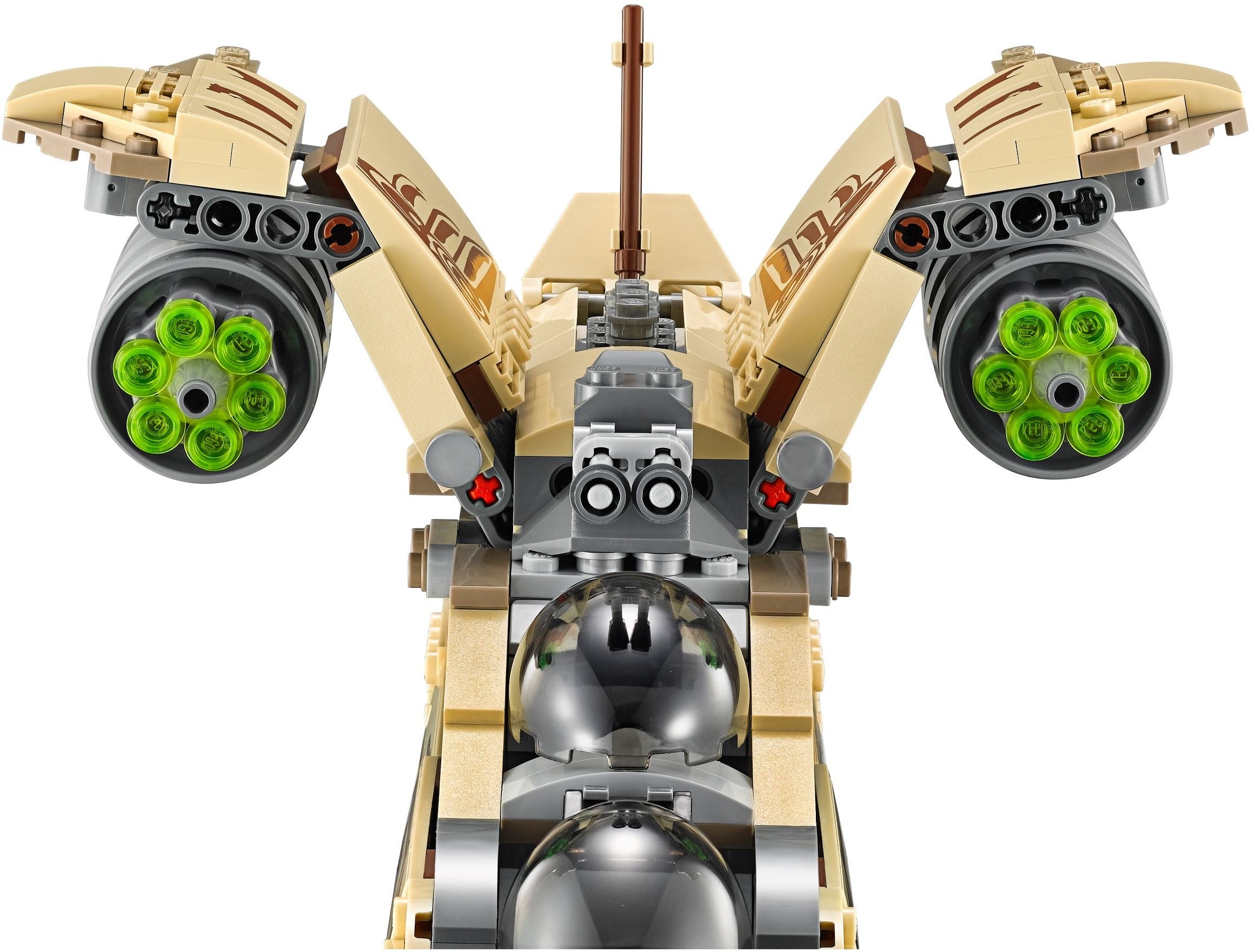 Protect Wullffwarro and his Jedi friend, Kanan Jarrus, with the powerful LEGO® Star Wars Wookiee Gunship. As featured in the Star Wars: Rebels animated TV series, this amazing battle-ready craft has loads of weapons to see off any invading force, like movable front cannons and an elevating top cannon. When the action really heats up, raise the wings into attack mode and unleash the never-before-seen rapid shooters! If you run low on ammo, open the side hatches to access the spare supply, then lower the rear bay door and unload the mobile gun post. Includes 4 minifigures with assorted weapons: Wullffwarro, Kanan Jarrus, and 2 Wookiees.