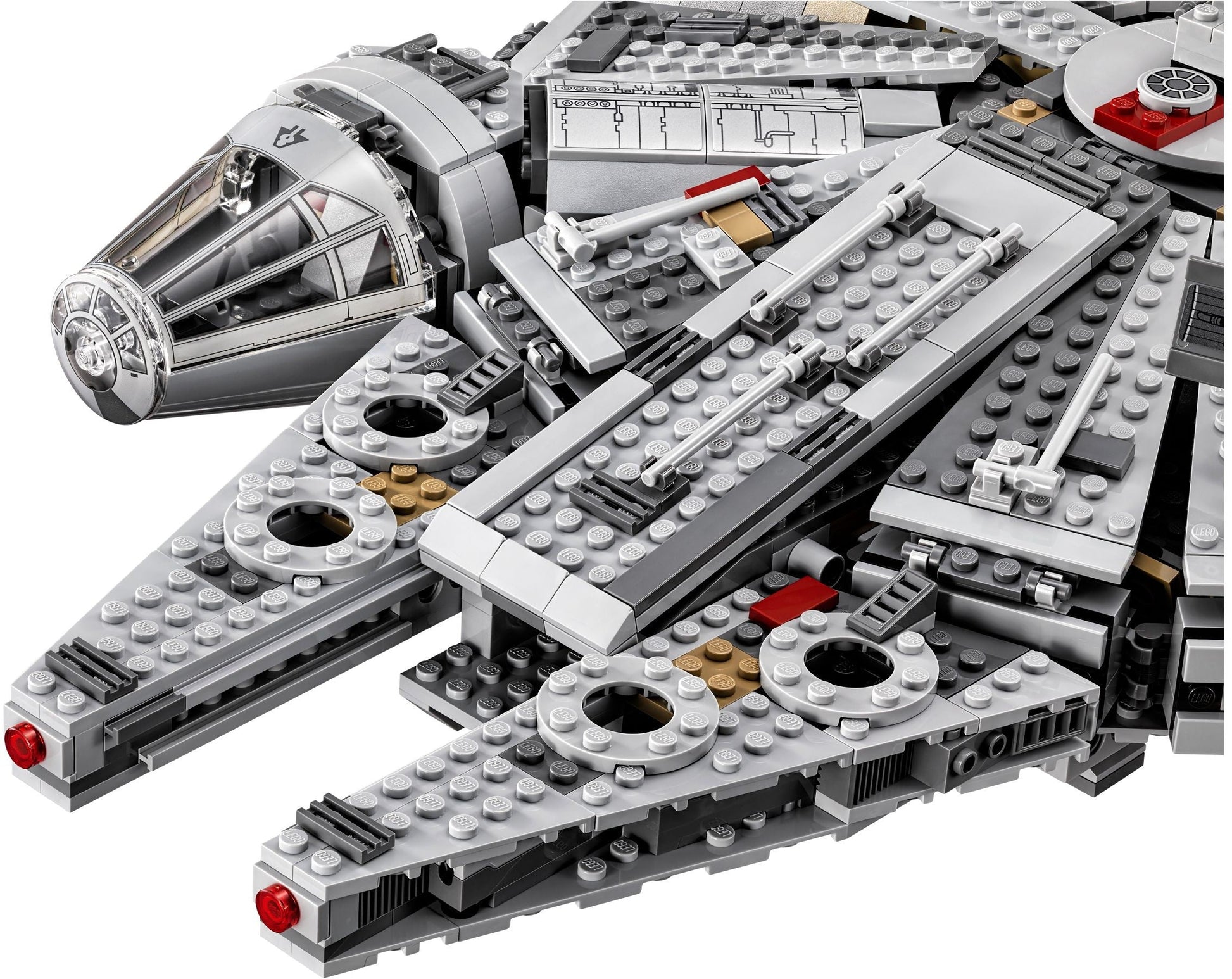 One of the most iconic ships of the Star Wars saga is back, and it’s leaner and meaner than ever before! As featured in exciting scenes from Star Wars: The Force Awakens, this latest LEGO® version of the Millennium Falcon is crammed with new and updated external features, including an even more streamlined and detailed design, a detachable cockpit with space for 2 minifigures, rotating top and bottom laser turrets with a hatch and space for a minifigure, dual spring-loaded shooters, a sensor dish, a ramp, and an entrance hatch. Open up the hull plates to reveal even more great new and updated details inside, including the main hold with seating area and holochess board, more detailed hyperdrive, secret compartment, extra boxes and cables, and storage for spring-loaded shooter ammo. And of course no LEGO Millennium Falcon model would be complete without Han Solo and Chewbacca, as well as other great characters from Star Wars: The Force Awakens. Activate the hyperdrive and set course for LEGO Star Wars fun! Includes 6 minifigures with assorted weapons: Rey, Finn, Han Solo, Chewbacca, Tasu Leech, and a Kanjiklub Gang Member, plus a BB-8 Astromech Droid.