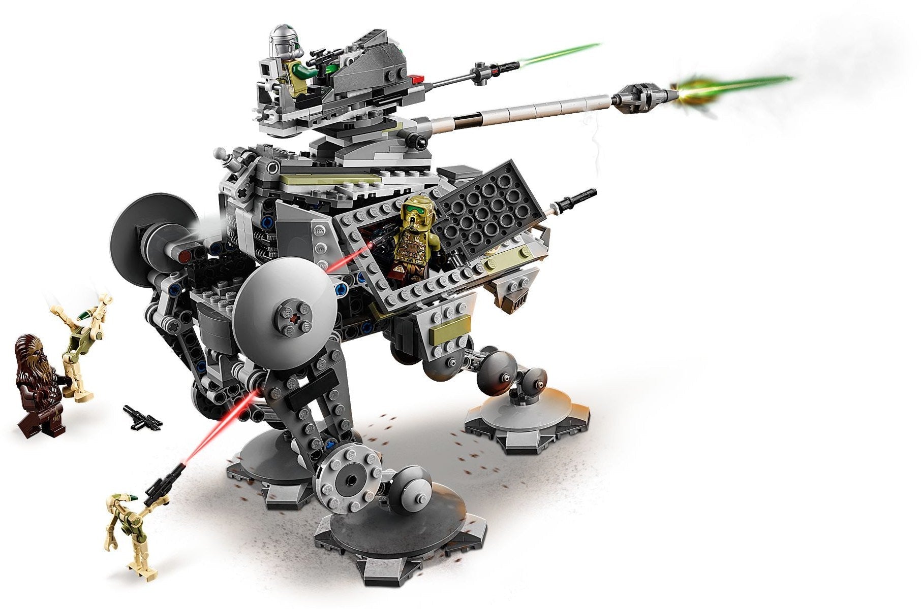 Add some heavy firepower to any LEGO® fan’s collection with the tough LEGO Star WarsTM 75234 AT-AP Walker. This impressive model features articulated legs and a retractable third leg, plus an opening top and sides that reveal a detailed 2-minifigure cockpit. The model also includes a rotating and elevating top turret with a seat for a minifigure and a spring-loaded shooter for exciting battling action. With Chewbacca, Clone Commander Gree, and Kashyyyk Clone Trooper minifigures plus 2 Kashyyyk Battle Droid LEGO figures, this collectable construction toy makes for a great birthday gift for kids.