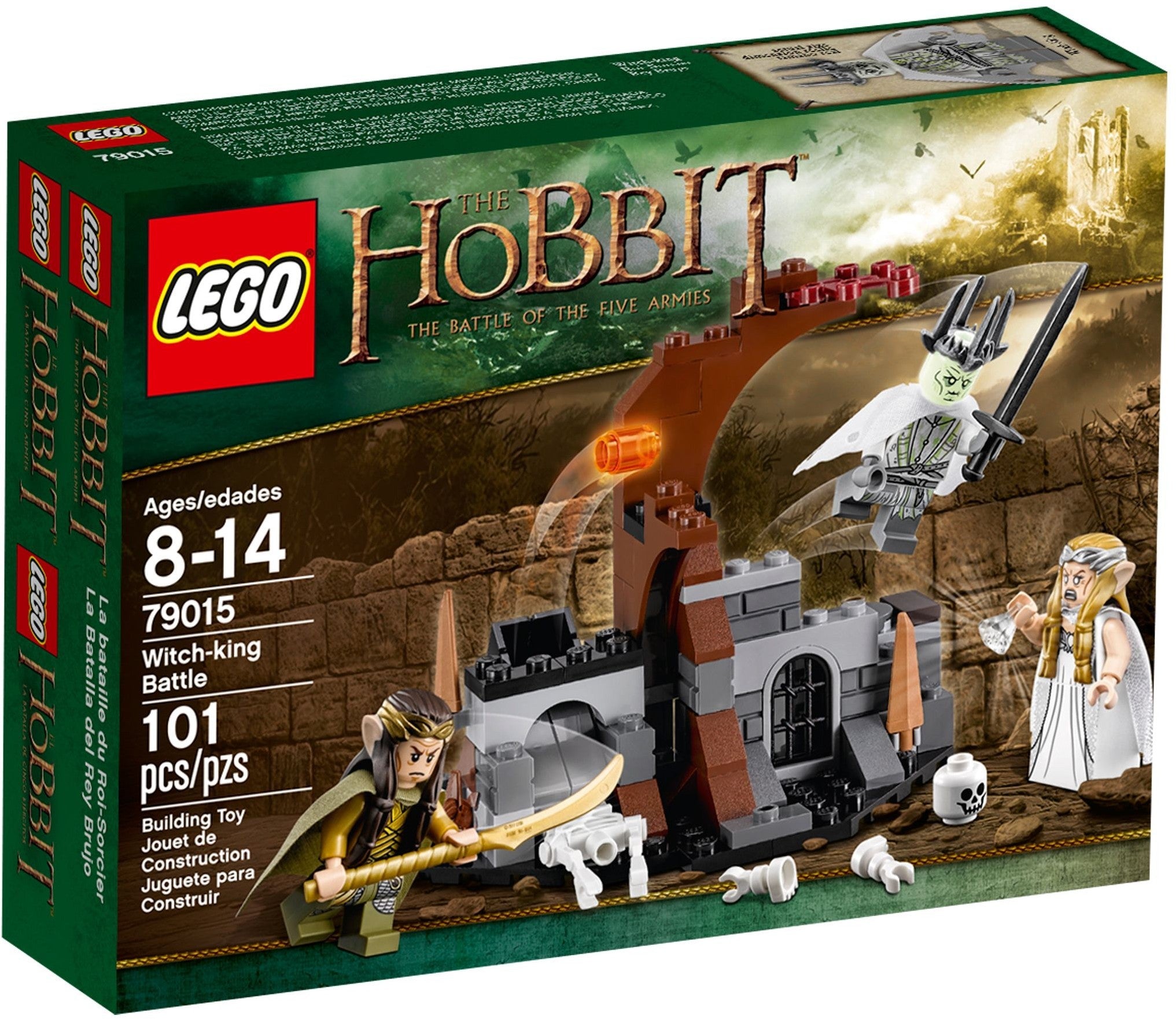 GaladrielTM and ElrondTM have ventured to the evil fortress of Dol Guldur, where they are attacked by the ghostly witch-king. Help our heroes to battle this vicious crowned foe with the glow-in-the-dark head. Reverse the faces of Elrond™ and Galadriel™ and use Galadriel’s Elven magic and The Light of Eärendil to overcome his evil powers. Evade fireballs shot from the catapult and connect all the skeleton bones to create an extra figure! Use Elrond’s golden sword to duel against the witch-king, who is spinning on the rotating platform for extra power. Who will triumph in this tense battle between good and evil? You decide. Includes 3 minifigures with assorted weapons and accessories: Witch-king, GaladrielTM, and ElrondTM.