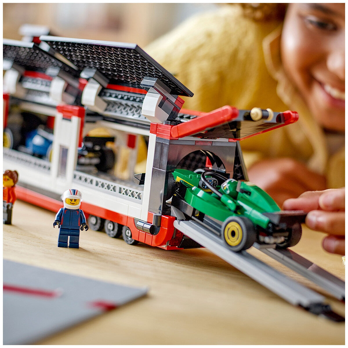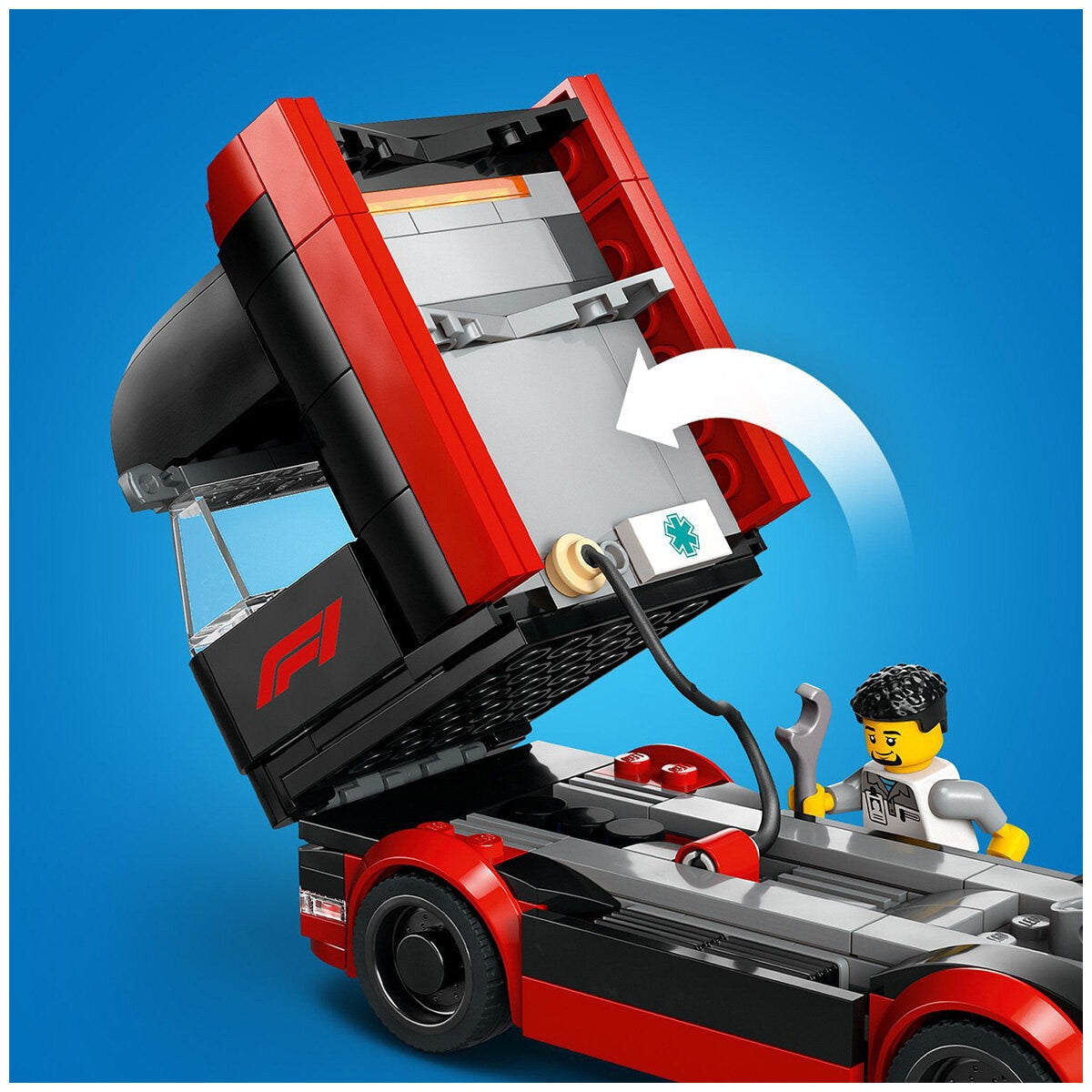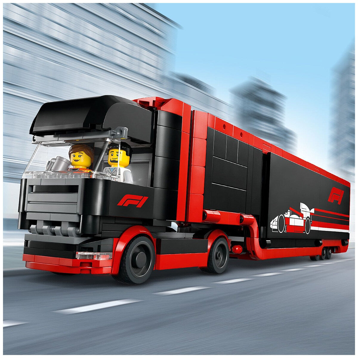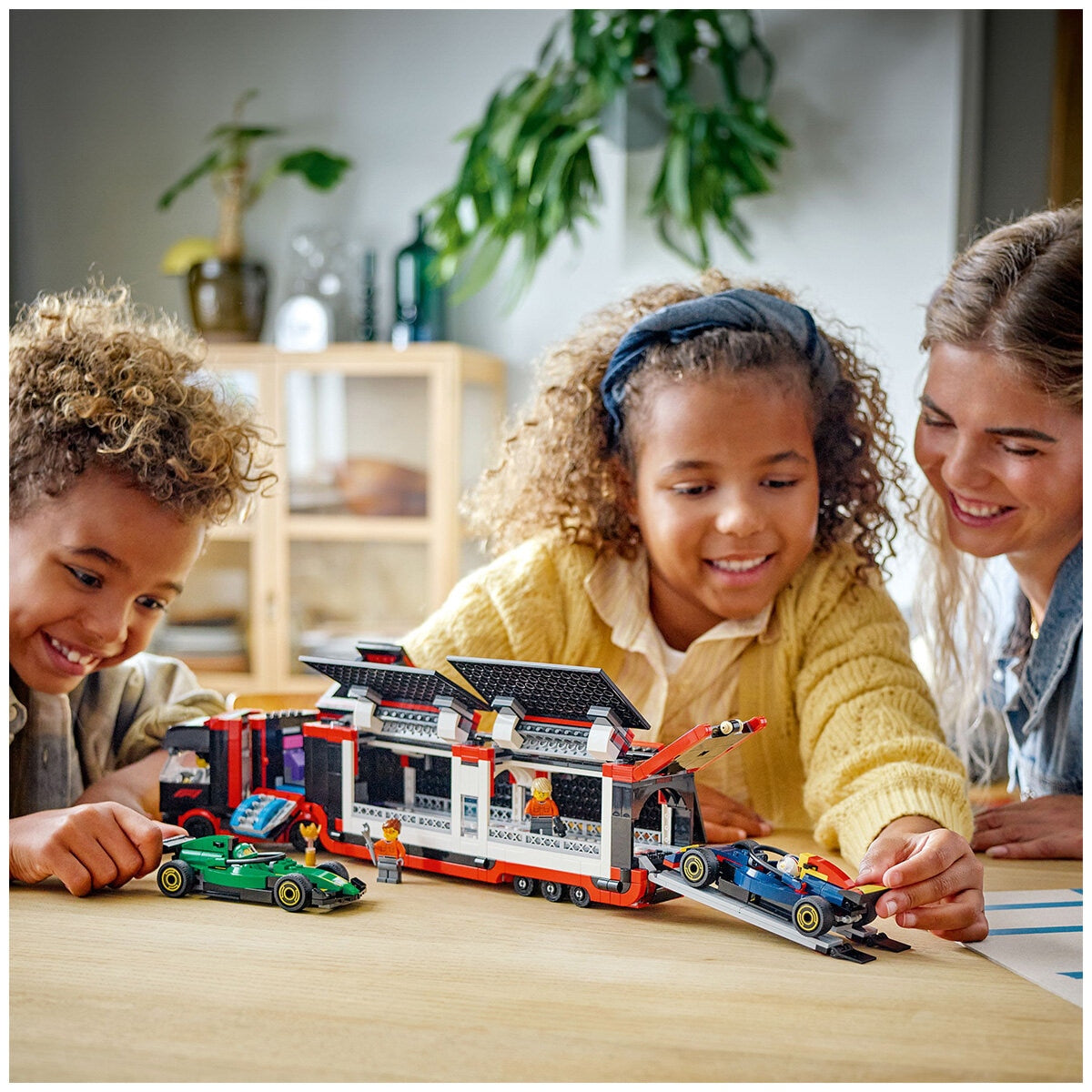 Introducing the LEGO City F1 Truck with RB20 & AMR24 F1 Cars Toy Racing Transporter Set 60445, the perfect gift for young racing fans aged 8 and over! This impressive playset features a premium transport truck with a detachable low loader trailer, an F1 simulator room, and a double vehicle bay with fully opening side panels. Kids can easily load the cool RB20 and AMR24 F1 race cars onto the truck using the rear hatch and loading ramps. The set also includes 2 drivers and 3 race crew minifigures, plus a trophy for exciting racetrack roleplay.