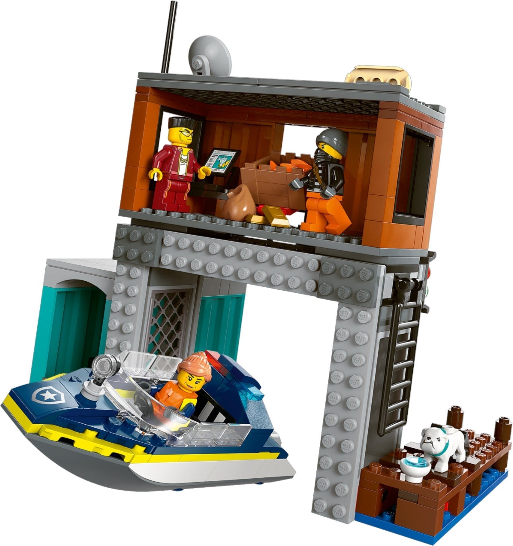 Crooks on the run with a police officer in pursuit make for great adventures in the LEGO City Police Speedboat and Crooks’ Hideout (60417) set. It features a toy police patrol boat and a crooks’ hideout hidden among old cargo containers at the city docks. Kids can join the officer onboard and discover an array of functions and surprises in a fun set that also includes a toy water scooter, dockside setting, a police officer, and 2 crook minifigures, plus a bulldog figure.