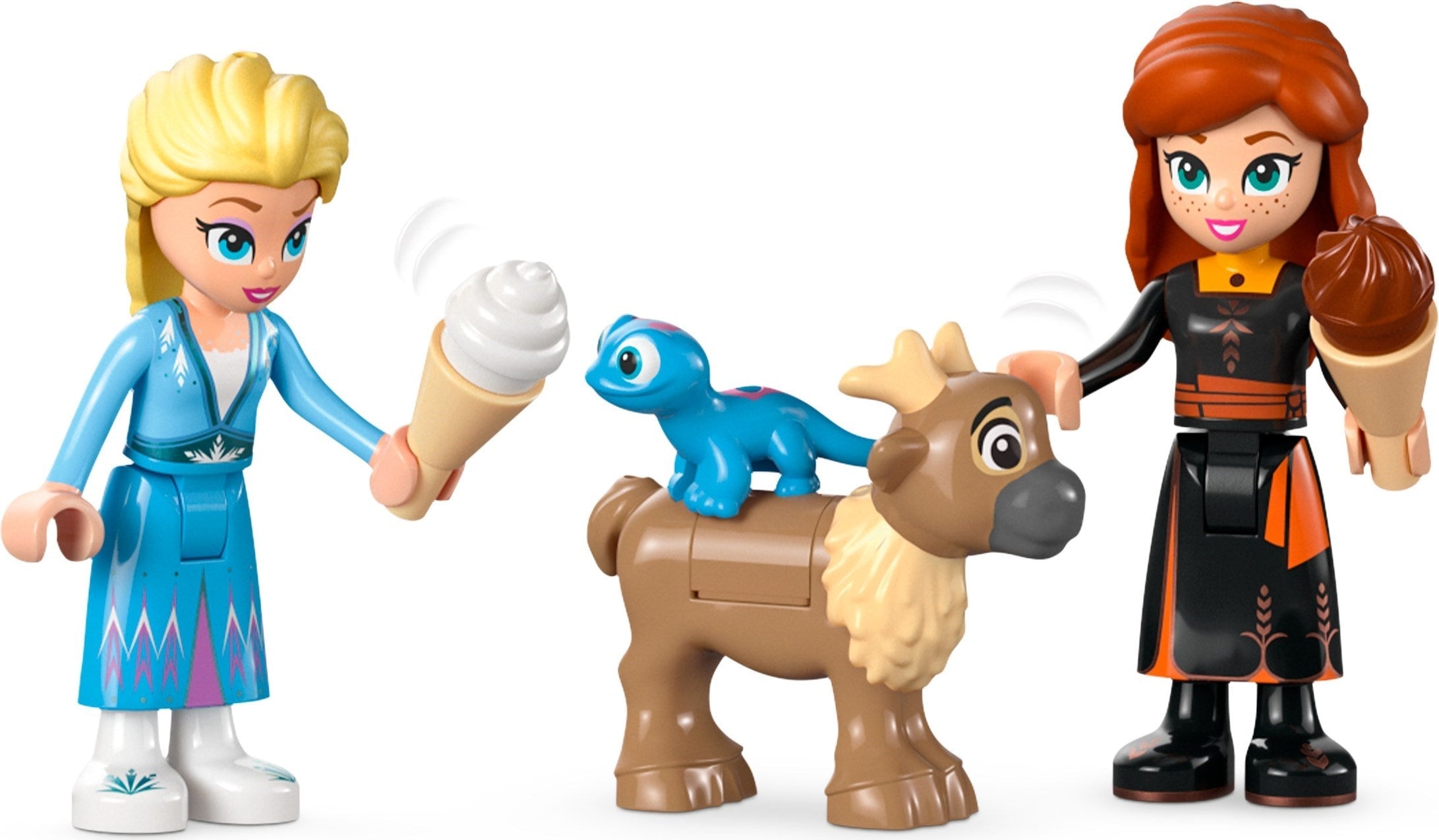 Unlimited palace play awaits kids aged 4 and up as they learn to build with this LEGO® | Disney Frozen Elsa’s Frozen Castle (43238) building toy. Inside is a castle with a kitchen, a fireplace, swing and slide area, a campfire, small ice canoe and lots of story starters. It includes Elsa and Anna LEGO | Disney mini-doll figures plus Bruni and baby reindeer LEGO | Disney animal figures.