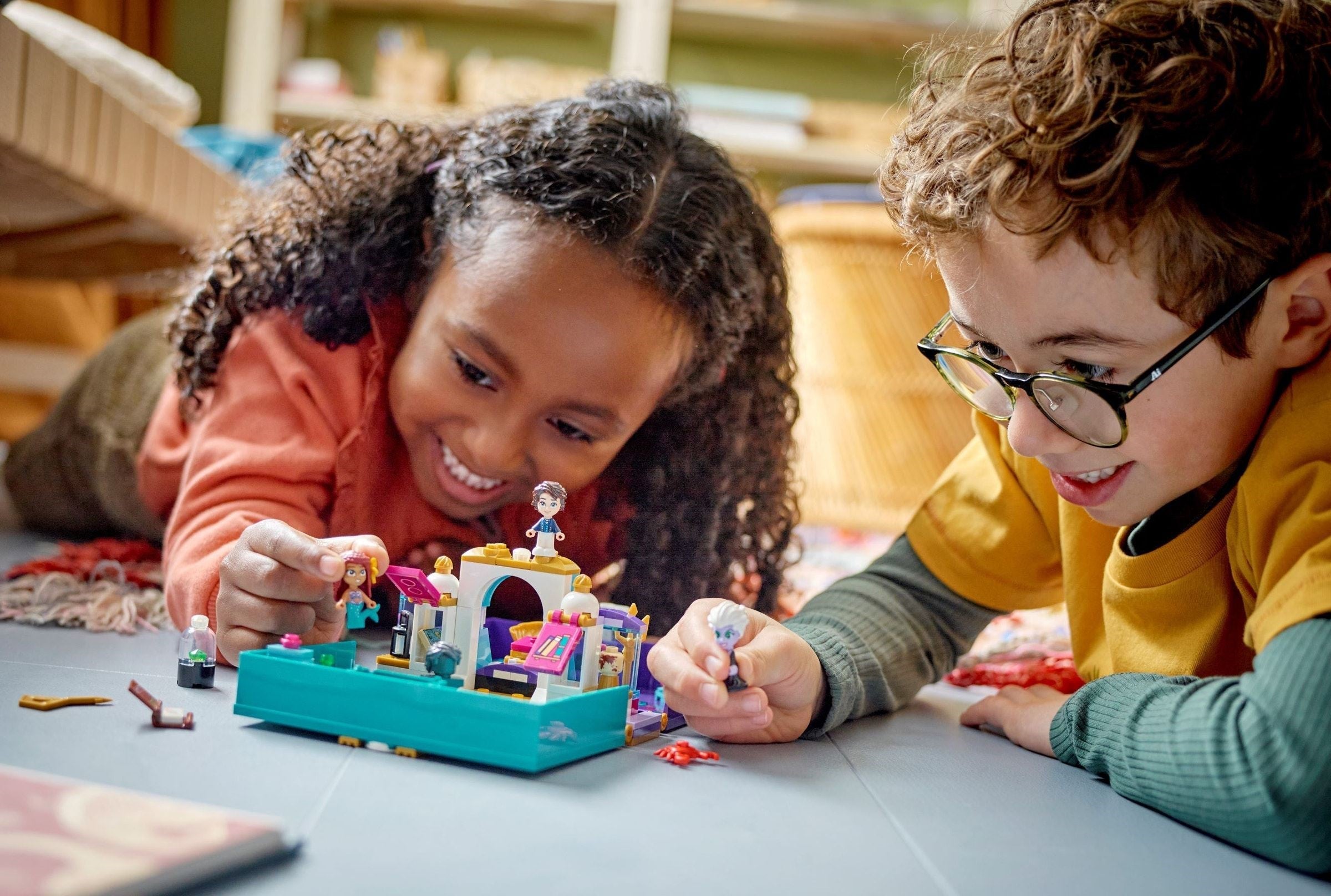 Iconic charactersThis LEGO set gets kids playing fast with 3 LEGO micro-doll figures—Disney’s Ariel, Prince Eric, and Ursula—plus a Sebastian LEGO crab figure. The storybook makes a fun gift that will wow kids everywhere.