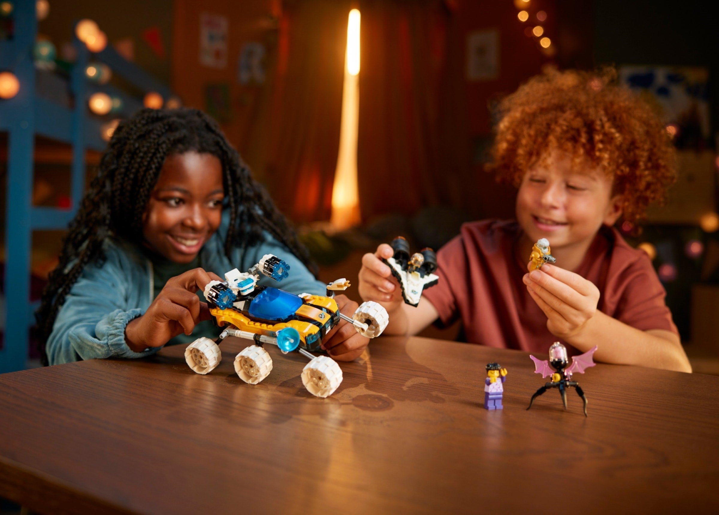Kids aged 7+ journey into the LEGO® DREAMZzzTM world with this Mr. Oz’s Space Car toy (71475), which can be built in 2 exciting ways. Based on the thrilling TV show, the building set allows kids to help Mr. Oz and Albert save Jayden, who’s been captured by a Grimspawn. Encouraging kids to choose their own adventure, the space toy can be built in 2 modes: space rover mode or space shuttle mode. In space rover mode, the model has a retractable grabber arm, a moving satellite, and a mini rover toy. In space shuttle mode, it has two large shooting cannons and a mini-shuttle toy. DREAMZZ heroes Mr. Oz and Jayden bring the set to life and allow kids to recreate their favorite scenes from the TV show. The building set also includes Albert and a Grimspawn figure, whose tentacles are posable and can trap the Jayden minifigure.