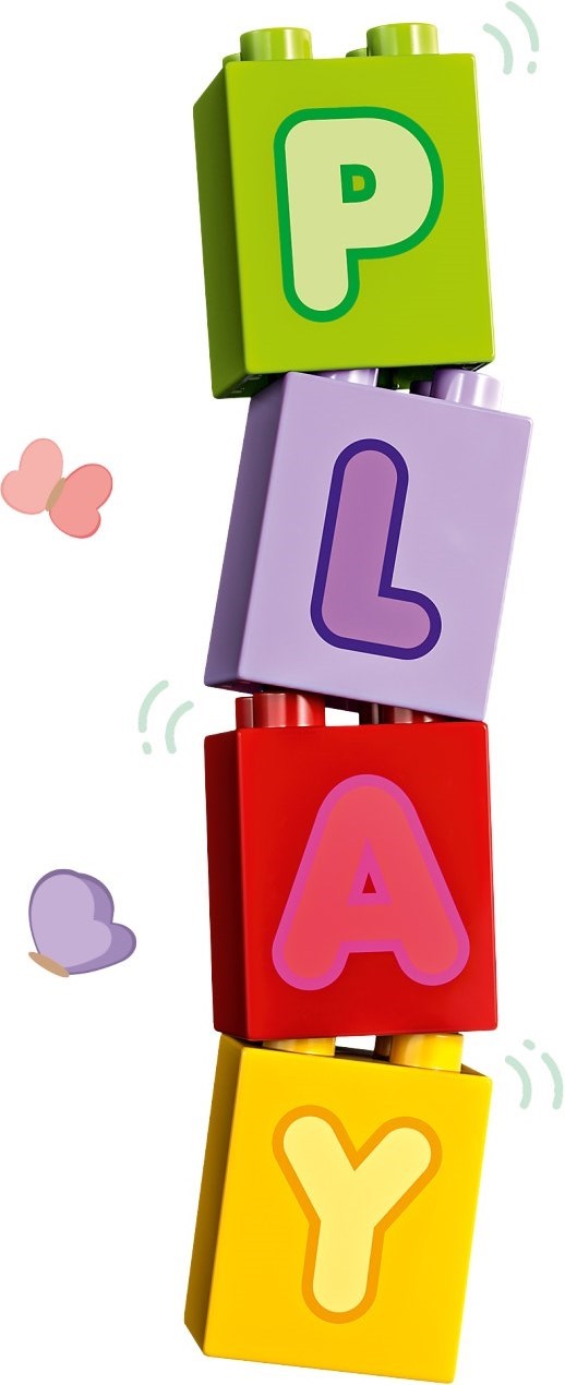Imaginative accessories include a LEGO DUPLO ABC book toy element and a stereo element to encourage fun ABC sing-alongs with parents and toddlers. This educational toy encourages toddlers to invent creative stories as they climb into their toy truck cab and head off for a new adventure!