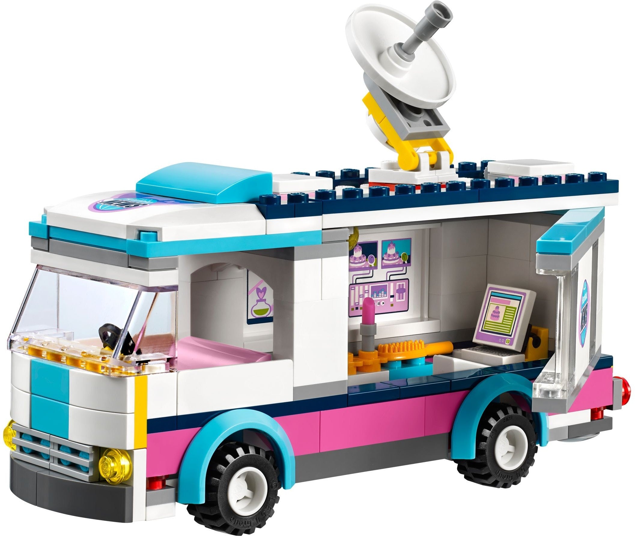 Break the big story of the world’s best cake with the Heartlake News Van! Find the cake and film it with the camera, and then climb into the editing suite and get it ready for broadcast. Get Emma ready at the makeup table so she looks her best for the camera. Sit her at the news desk as Andrew films her talking about the cake story and then presents the weather to the viewers. Comes with Emma and Andrew mini-doll figures.