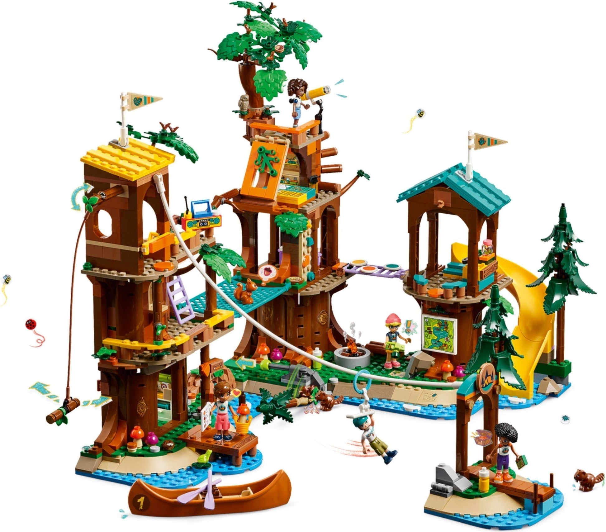 The building set is filled with fun features for creative play and comes with 5 mini-dolls, accessories, and lots of animal figures, including 2 beavers who are building a dam. Send the characters whizzing down the zip line or help them navigate the obstacle course with its log bridge, climbing wall, and trapdoors. There are also activities like canoeing, plus an island that can be reached by boat or zip line!