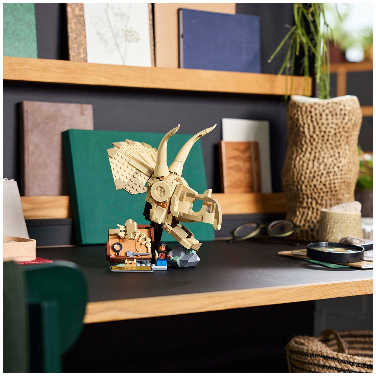 Get ready for an adventure in the Jurassic world with the LEGO Jurassic World Dinosaur Fossils: Triceratops Skull Model Set!