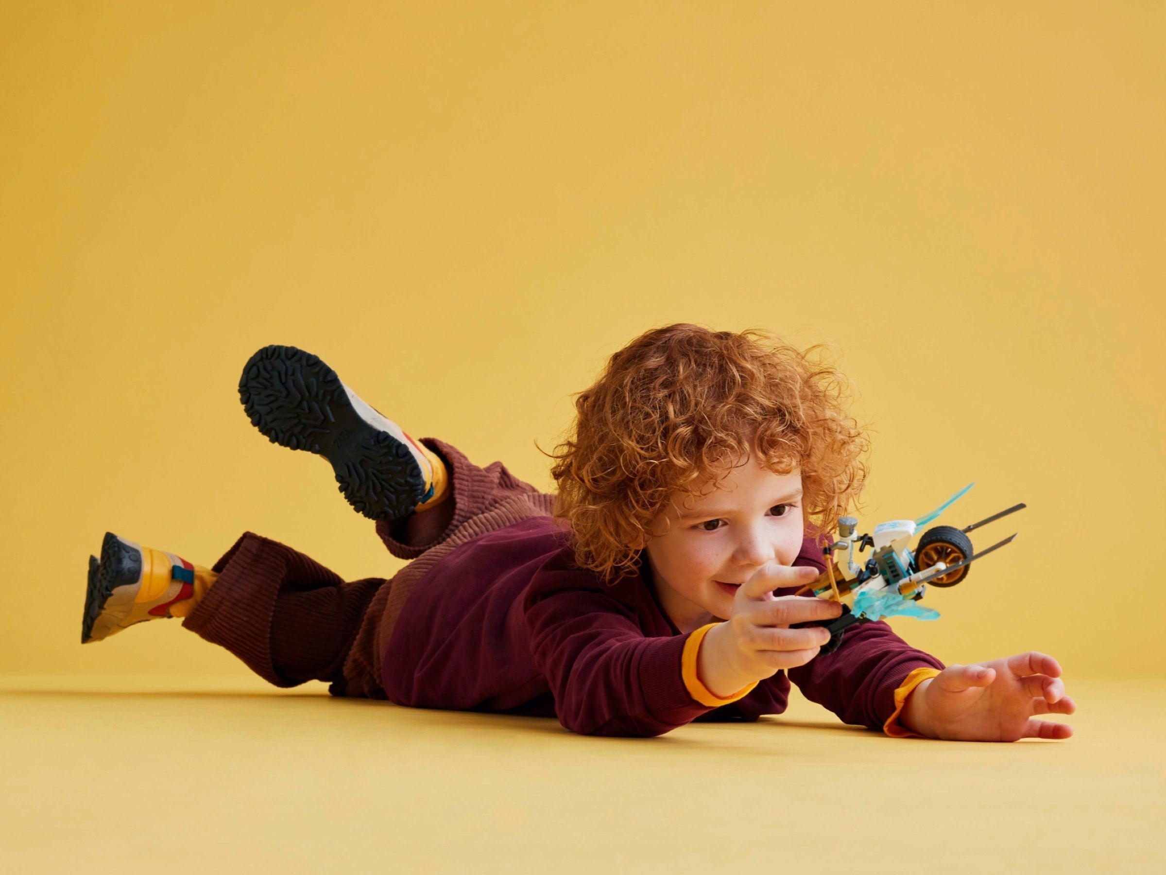 LEGO NINJAGO Zane’s Ice Motorcycle toy (71816) lets boys and girls aged 7+ recreate fast-paced action from season 2 of the NINJAGO Dragons Rising TV show. This Ninja toy for kids includes a Ninjago motorcycle with moving wheels, golden blades, and suspension on the back tire. When kids press down on the tire, cool attack-mode ice blades fold out on both sides.