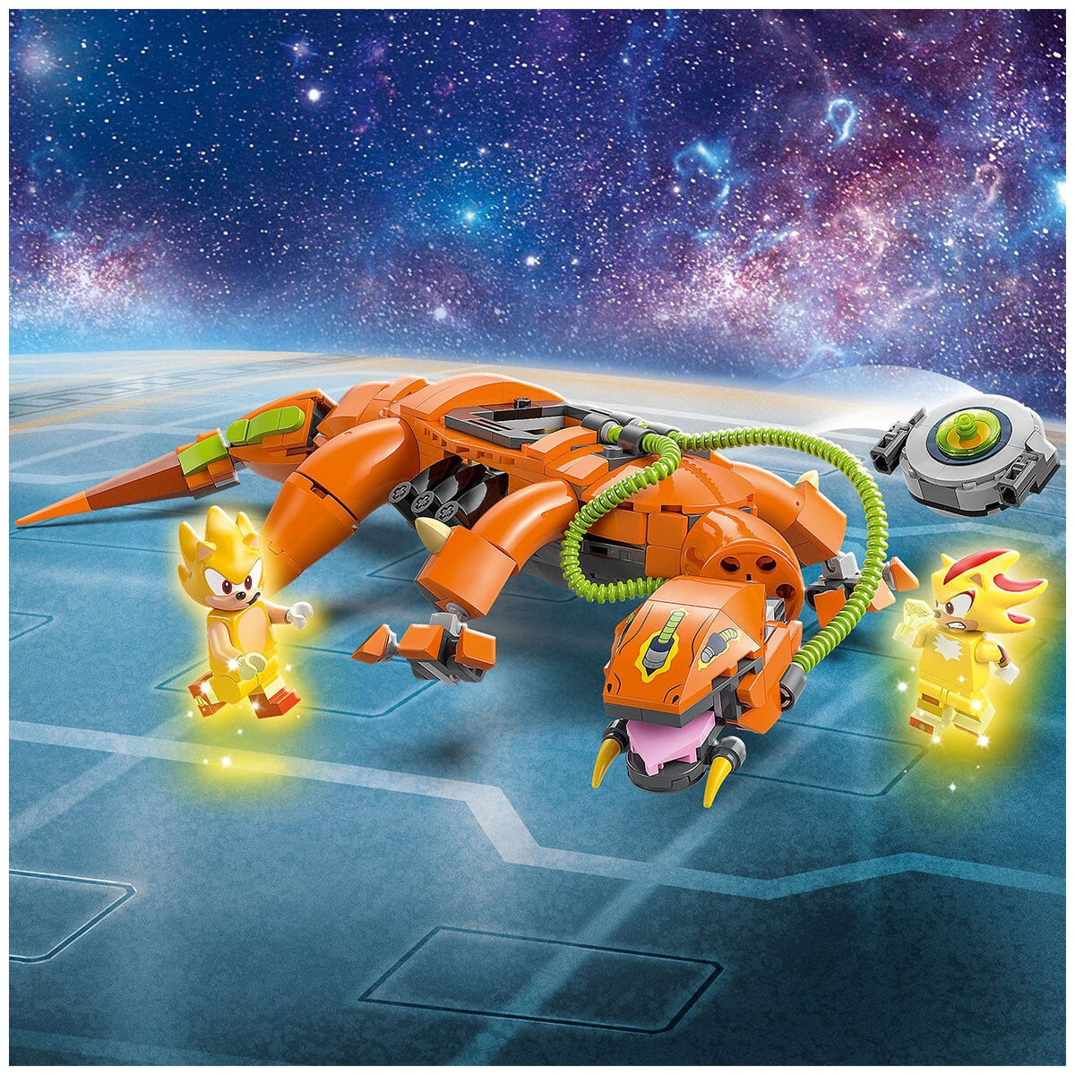 Inspire action-packed storytelling adventures with the LEGO Sonic the Hedgehog Super Shadow vs. Biolizard Gamer Gift Toy 77003. This collectible building set is perfect for kids and fans aged 9 and over, featuring a brick-built Biolizard figure with an energy pod, a speed sphere launcher, and accessories including a Chaos Emerald. The set also includes two iconic characters: Super Shadow and Super Sonic minifigures.