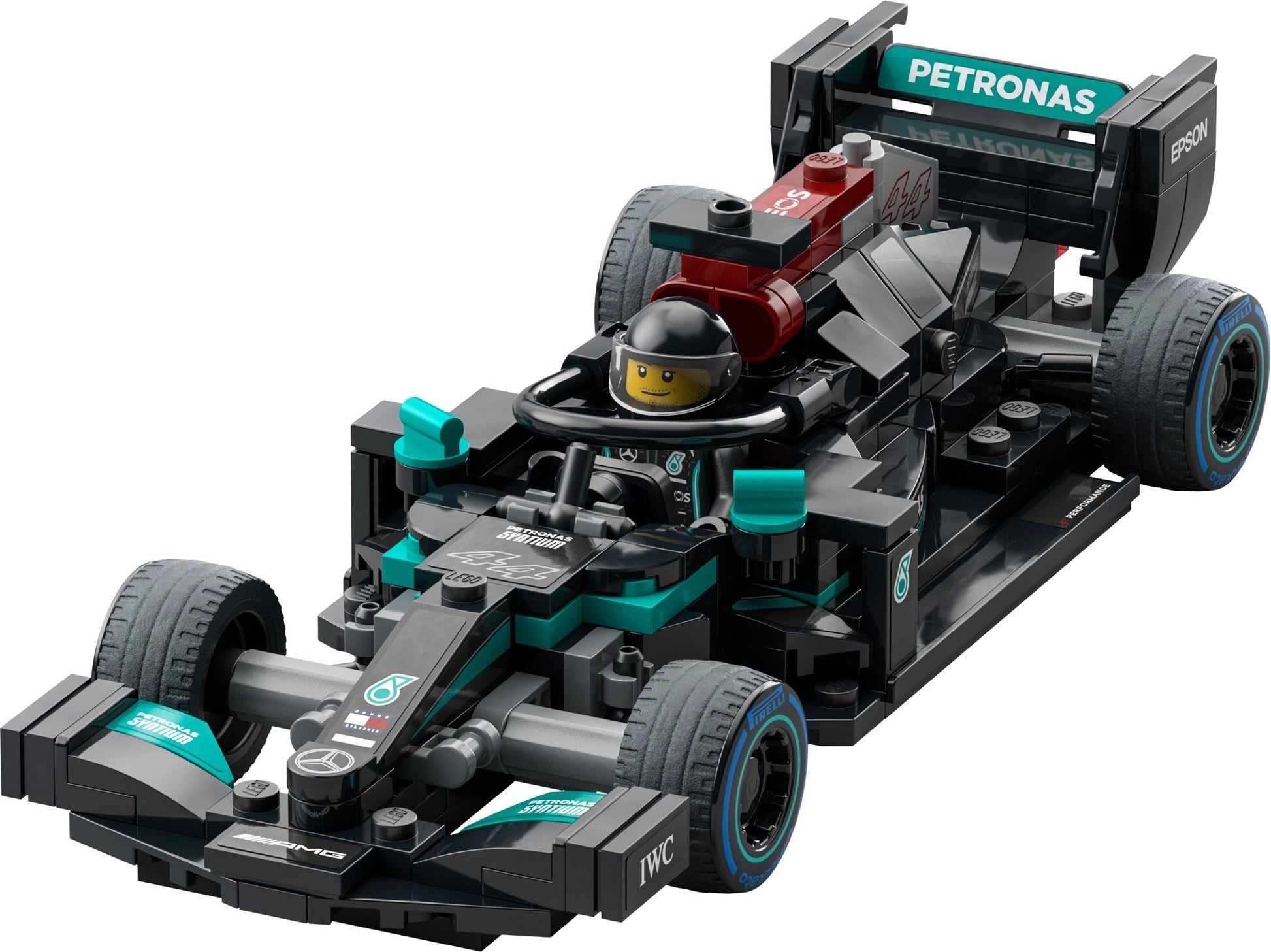 What’s in the box? – All you need to build a LEGO® recreation of the Mercedes-AMG F1 W12 E Performance and AMG Project One, plus 2 driver minifigures, each with a racing helmet, wig and wrench