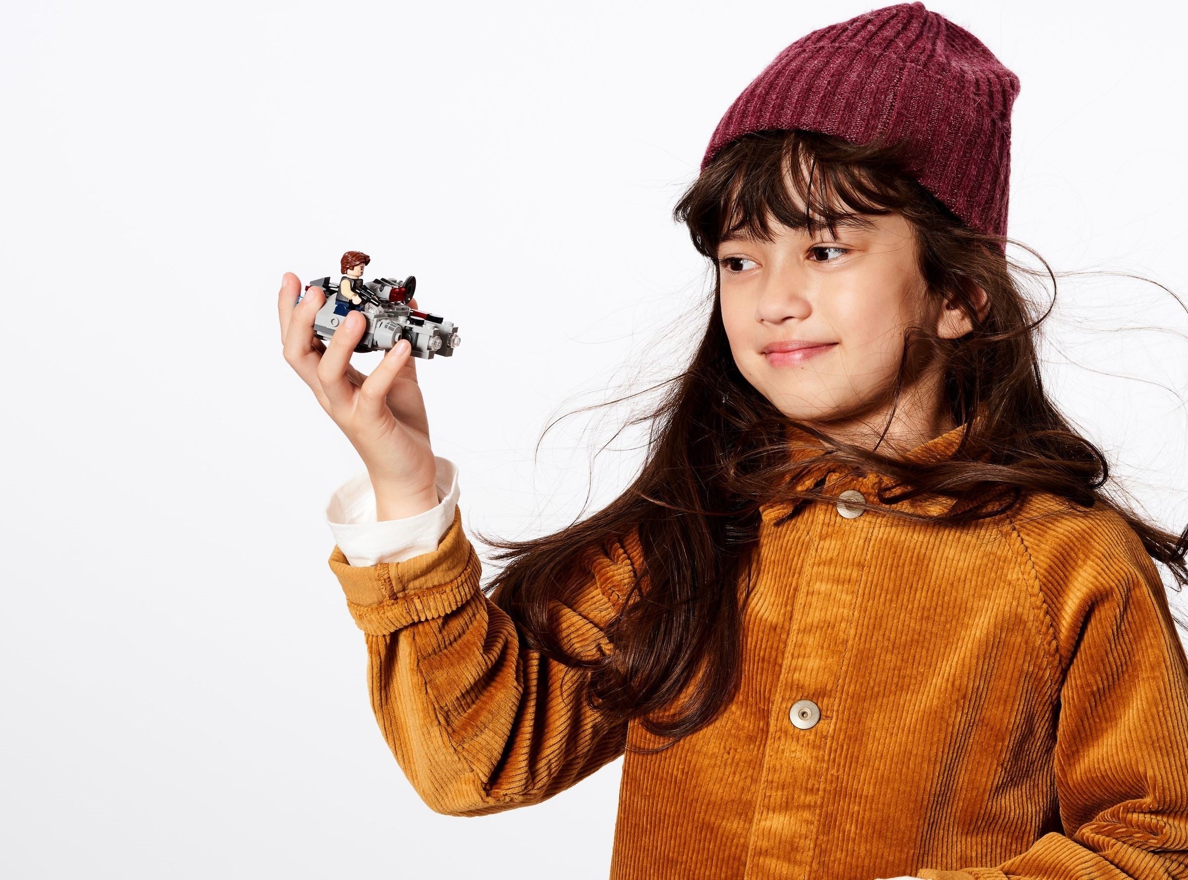 A fun-to-build Millennium Falcon for young kids Give a young child an unexpected treat with this LEGO® Star Wars ™ Millennium Falcon Microfighter (75295). Based on the iconic vehicle’s design in the classic Star Wars trilogy, this awesome brick-built toy has 2 stud shooters and a LEGO minifigure seat. The set also includes a Han Solo LEGO minifigure with his blaster pistol so kids can roleplay as the Rebel hero in their everyday playtime adventures. Easy to build There are step-by-step instructions so even LEGO beginners can build independently. This construction model also combines perfectly with the AT-AT vs. Tauntaun Microfighters (75298) set for extra battle action. The LEGO Star Wars universe Since 1999, the LEGO Group has been recreating iconic starships, vehicles, locations and characters from the Star Wars universe. LEGO Star Wars has become its most successful theme with a wide variety of building toys that make the best gifts for kids and fans of all ages. Young children can roleplay as the Rebel hero from Star Wars ™ in their own stories with this quick-to-build LEGO® Microfighters version of the Millennium Falcon from the classic Star Wars trilogy. The Millennium Falcon Microfighter (75295) features a seat for the Han Solo LEGO® minifigure and 2 stud shooters, for fun, creative play. Han Solo also has a blaster pistol. This buildable playset combines brilliantly with the AT-AT vs. Tauntaun Microfighters (75298) set to open up even more play options. Easy to build – and to rebuild after battles – this durable 101-piece building toy makes the best birthday present, holiday gift or fun surprise treat for creative kids aged 6+. The Microfighter measures over 1.5 in. (4 cm) high, 3 in. (8 cm) long and 3 in. (7 cm) wide – a nice, compact size to slip into a child’s backpack ready for play on their travels. Thinking of buying this set for a young Star Wars ™ fan who is a LEGO® newcomer? No worries. It comes with illustrated, step-by-step instructions so they can build with confidence. LEGO® Star Wars ™ building sets are awesome for kids (and adult fans) to recreate scenes from the Star Wars saga, make up their own adventures and/or display the collectible construction toys. Ever since 1958, LEGO® components have met the highest industry standards to ensure they connect consistently – no need to use the Force. LEGO® components are dropped, heated, crushed, twisted and analysed to make sure they meet rigorous safety standards.