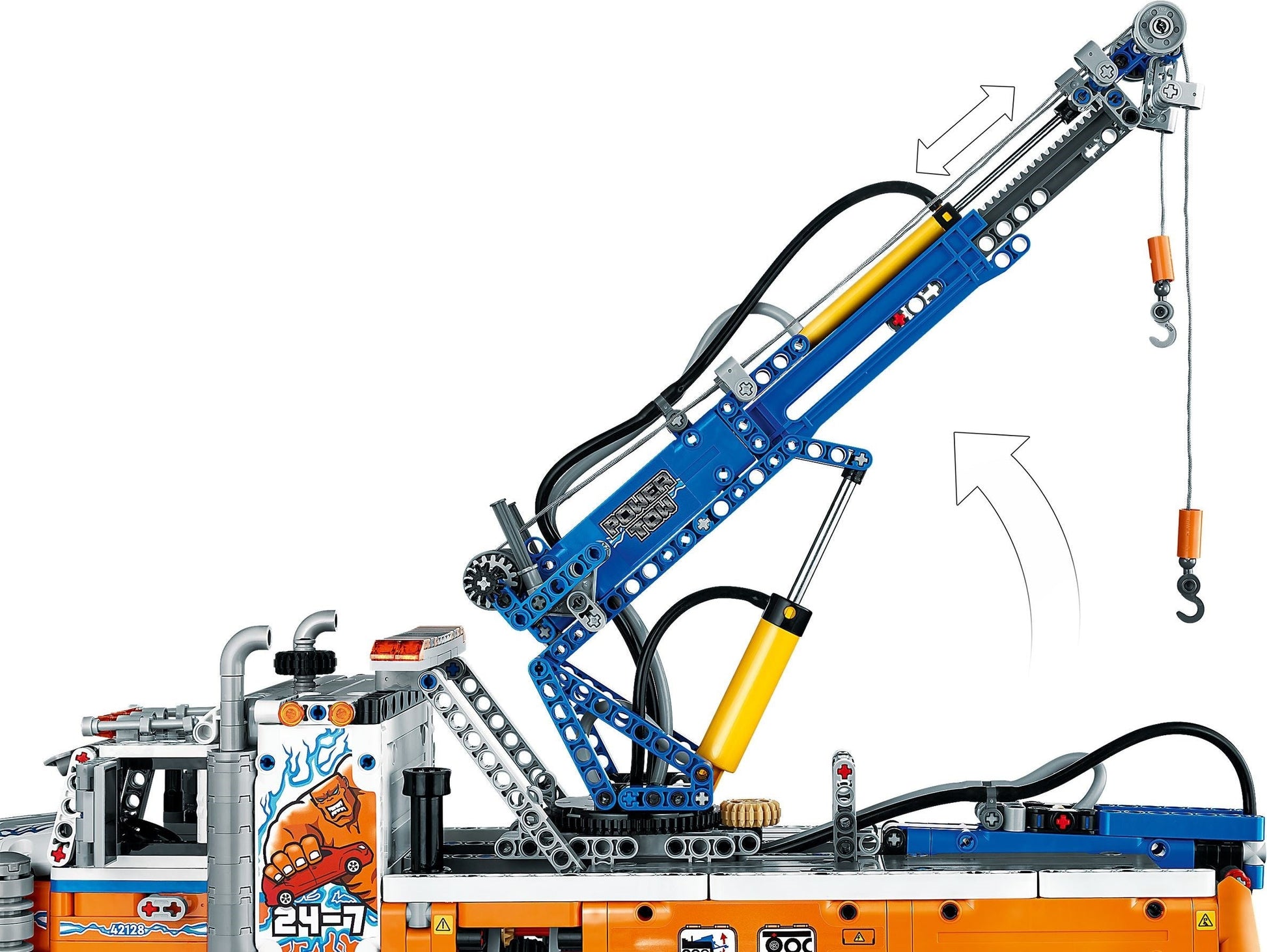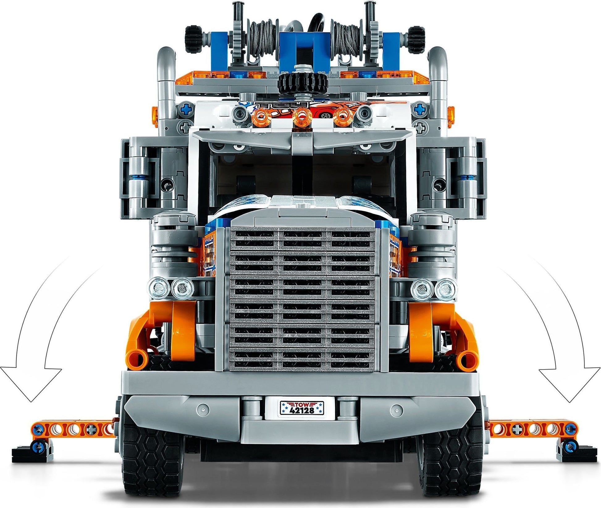 Build a classic tow truck Open up the world of engineering with this LEGO® Technic Heavy-duty Tow Truck (42128) model. Packed with details, it’s a great tribute to the world’s best-loved tow trucks. Check out its authentic grille, air filters, lights, exhaust pipe, and fresh colour scheme. Then explore all the pneumatic and mechanical functions that make this model so realistic. A construction toy packed with working functions This tow truck toy with crane is filled with impressive features. Open the bonnet to see the 6-cylinder inline engine with moving pistons. Steer by rotating the pin on the roof. Activate the crane, pump up the boom, pull out the winch and extend the outriggers. And for the first time in LEGO Technic history, this vehicle has a lifting axle to pull down extra wheels and spread the weight of loads. A great introduction to engineering LEGO Technic sets feature realistic movement and mechanisms that introduce LEGO builders to the universe of engineering in an approachable and realistic way. Explore the engineering brilliance of classic tow trucks with this LEGO® Technic™ Heavy-duty Tow Truck 42128 toy building kit. Enjoy the build, then explore the model’s many features and functions. Just like a real heavy-duty tow truck, this model features pneumatic pump functions including an extending lifting boom, a lifting crane boom and an extending crane boom. Check out all the mechanical functions like the rotating crane, working winch, outriggers, boom, plus the lifting axle which pulls down extra wheels for uneven loads – a first for LEGO® Technic™! This truck toy set makes a cool gift for kids and teens aged 11 and up who love mechanical toys. It’s also a great set for kids and adults to explore together while learning about engineering. This tow truck with crane model measures over 22 cm. (8.5 in) high (with crane down), 58 cm. (23 in) long (with boom down) and 14 cm. (5.5 in) wide (with outriggers up). Steer the truck by rotating the pin on top of the roof. Open the hood to see the 6-cylinder inline engine with moving pistons. Classic tow truck design details include the authentic grille, air filters and fresh colour scheme. The LEGO® Technic™ universe offers advanced building toys for LEGO fans who are ready for their next building challenge. LEGO® Technic™ components meet rigorous industry standards to ensure they are consistent, compatible and connect reliably every time. LEGO® Technic™ components are dropped, heated, crushed, twisted and analysed to make sure they meet strict global safety standards.