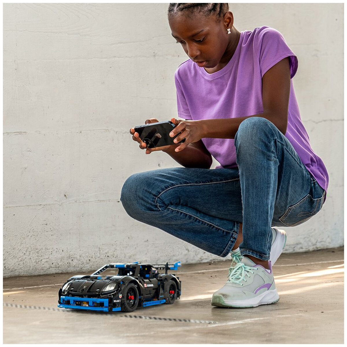 This LEGO Technic Porsche GT4 e-Performance Race Car is the fastest car in the LEGO Technic Control+ range (as of August 2024). Download the Control+ app to take control of the steering, activate the lights, and monitor live data feedback as you master your driving skills.