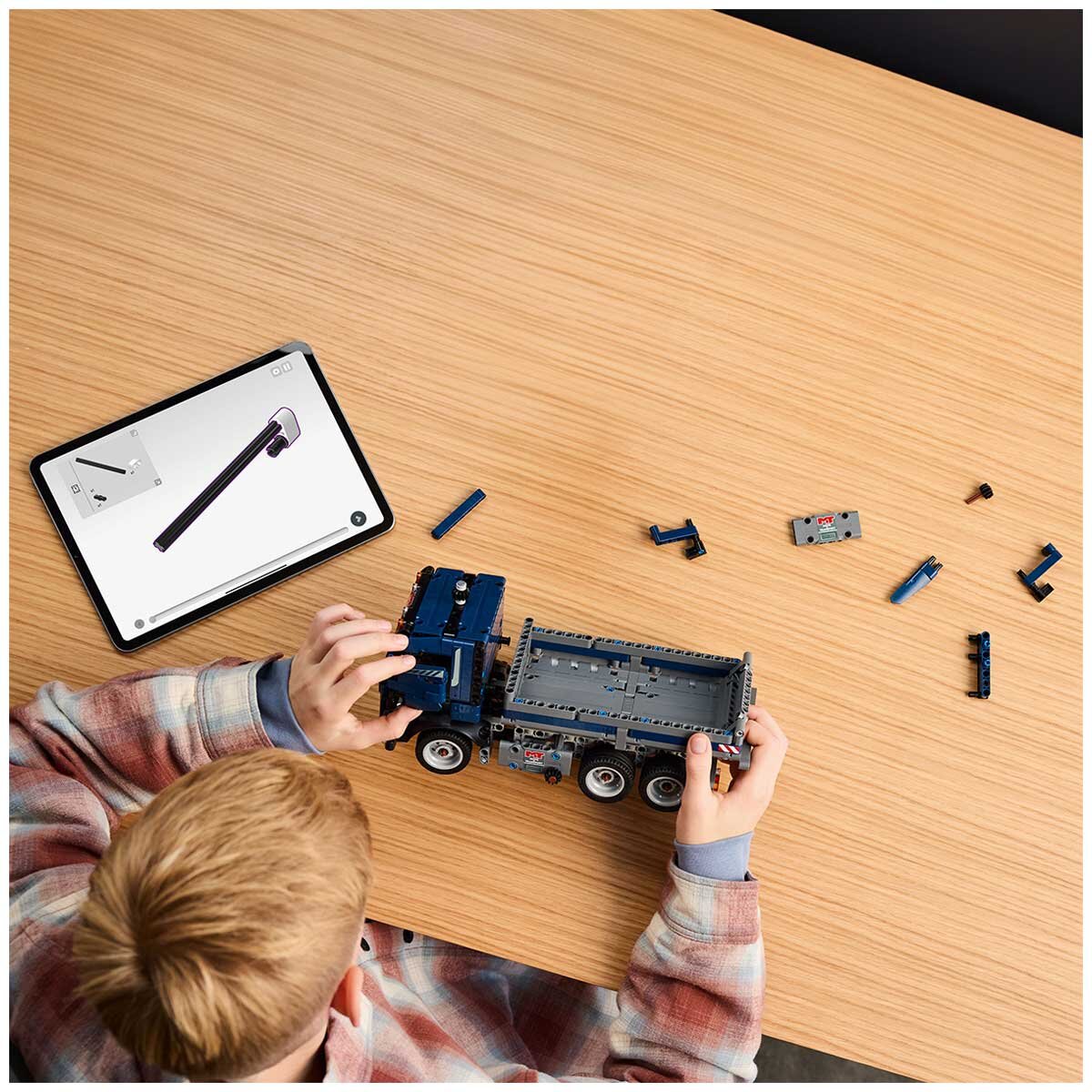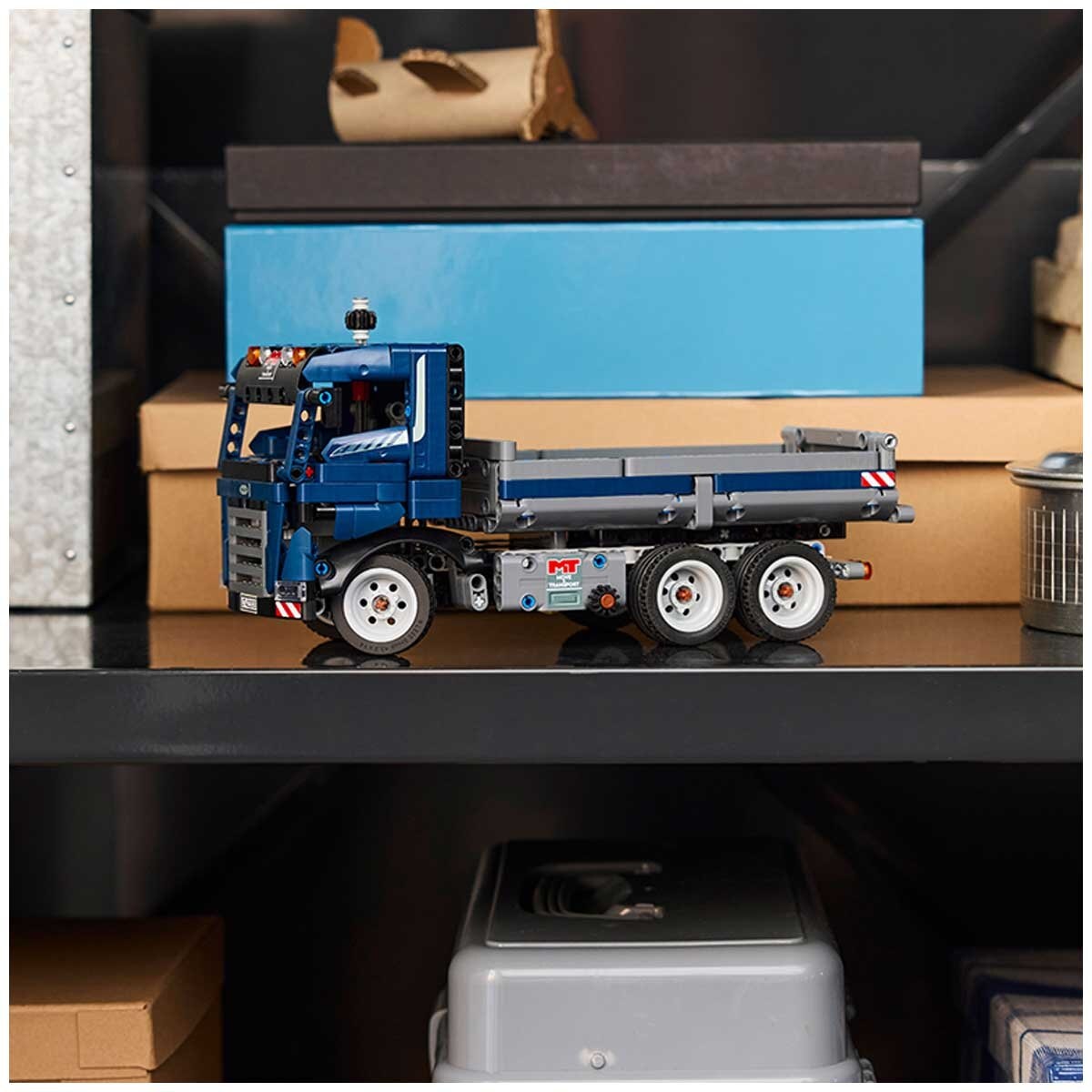 Kids aged 9 and over can create endless construction site adventures with the LEGO Technic Tipping Dump Truck toy 42203. This blue construction truck toy vehicle set allows young builders to imagine a busy working day operating their tipper truck. Steer the truck into position, then turn the knob on the side to tip the lid. Open the doors to see inside the cab, then drive the truck to its next building site task.
