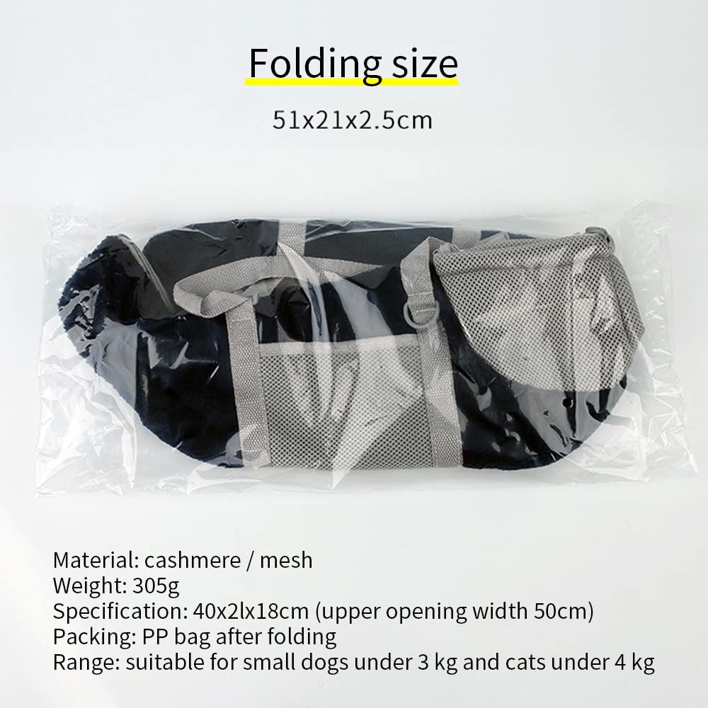 The cat carrier bag is made of lambskin and mesh fabric, combining softness and breathability. It is designed to accommodate dogs weighing up to 3kg and cats weighing up to 4kg. The shoulder strap is adjustable, allowing for easy carrying by hand or over the shoulder. Additionally, the bag features a convenient hook that can be attached to the pet's collar, ensuring security during transportation. The inclusion of a cushion provides extra comfort for the pet inside the bag, allowing them to relax and enjoy the journey.