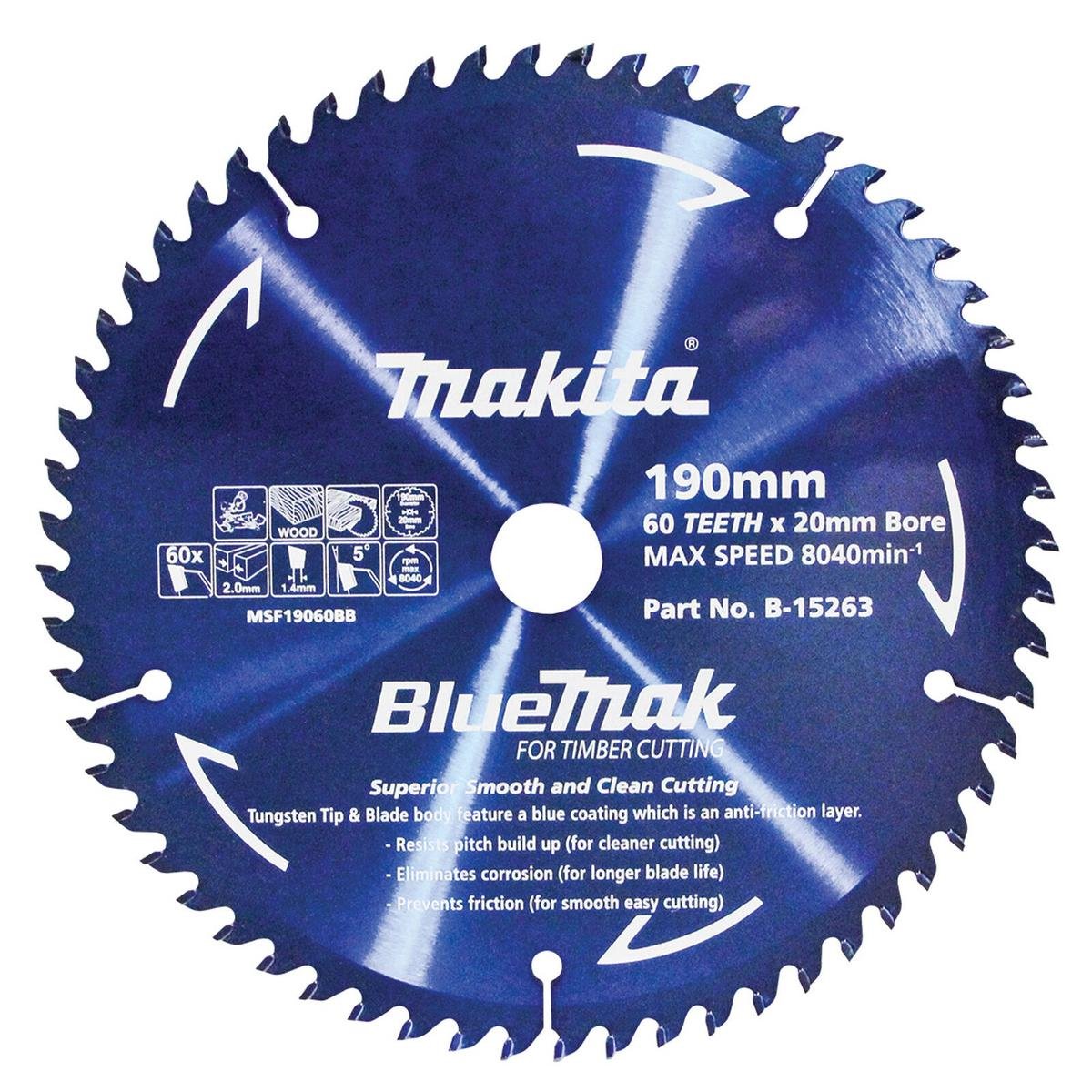 Makita 190mm 60t Bluemark Circ Saw Blade B 15263 is a high-quality circular saw blade designed for precision cutting in various woodworking applications.