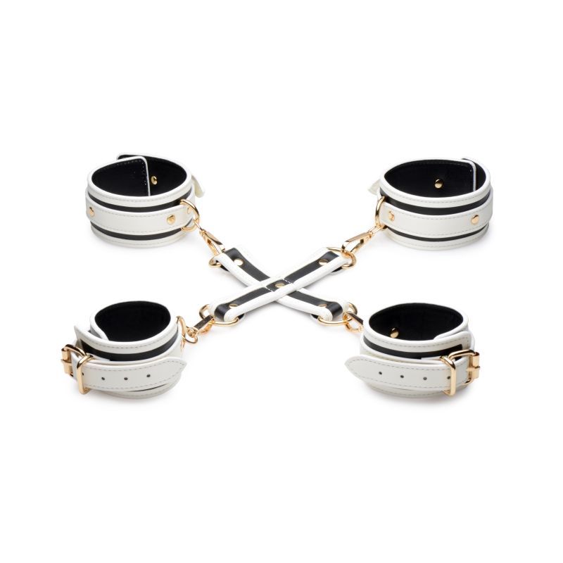 This complete hog tie set includes essential elements for thrilling bondage experiences, designed to glow in the dark for added excitement.