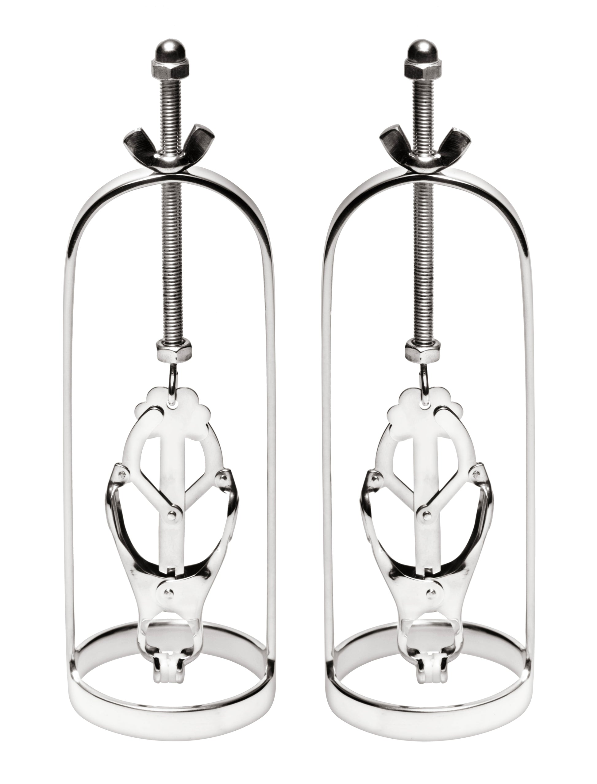 The Master Series Stainless Steel Nipple Stretcher Clamp is designed to enhance your pleasure. This innovative device gradually stretches the nipple for an intense sensation.