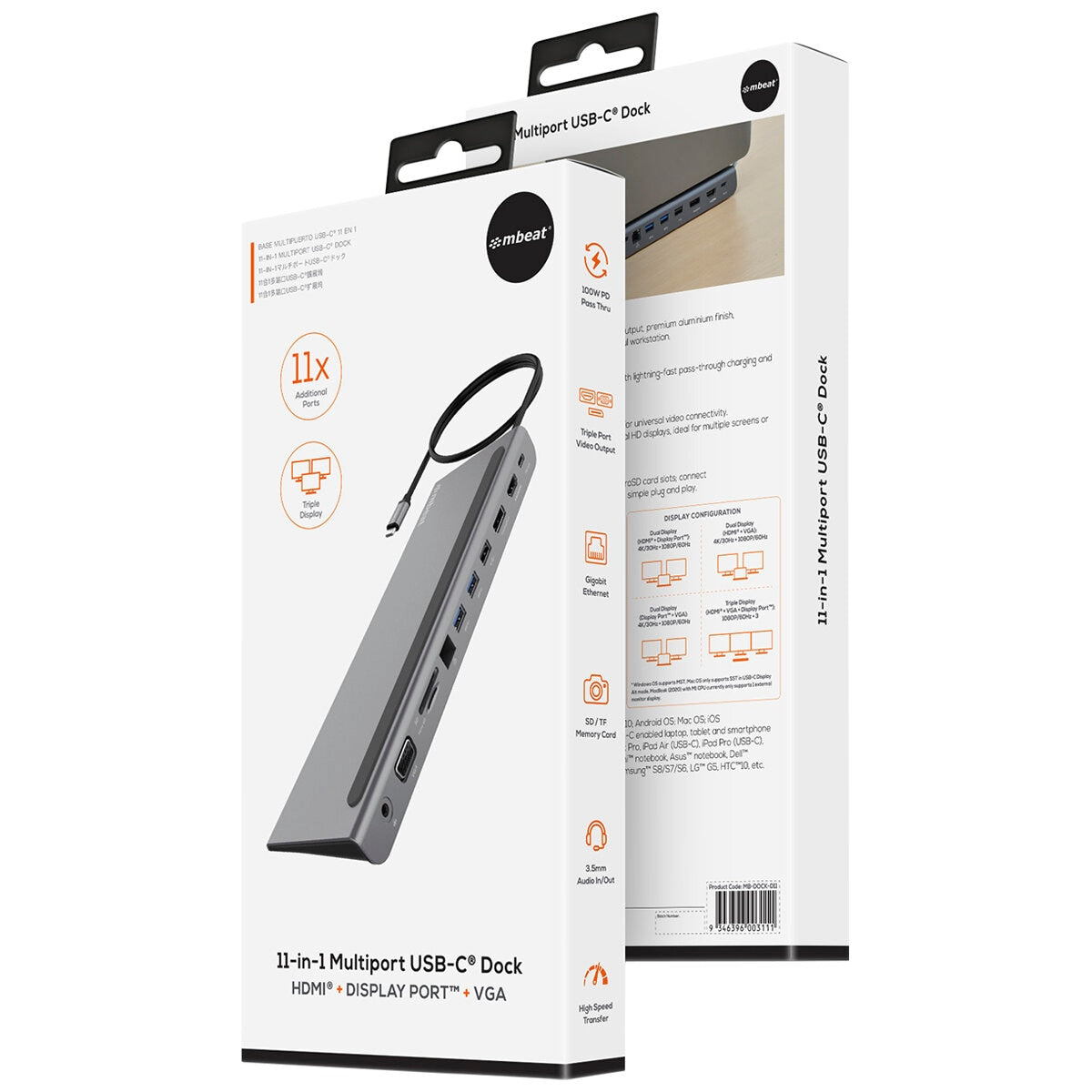 Transform your USB-C laptop into a powerful workstation with the mbeat 11-in-1 USB-C Docking Station. This premium aluminum docking station boasts triple video output, lightning-fast charging, and enhanced ergonomics for improved productivity and comfort.