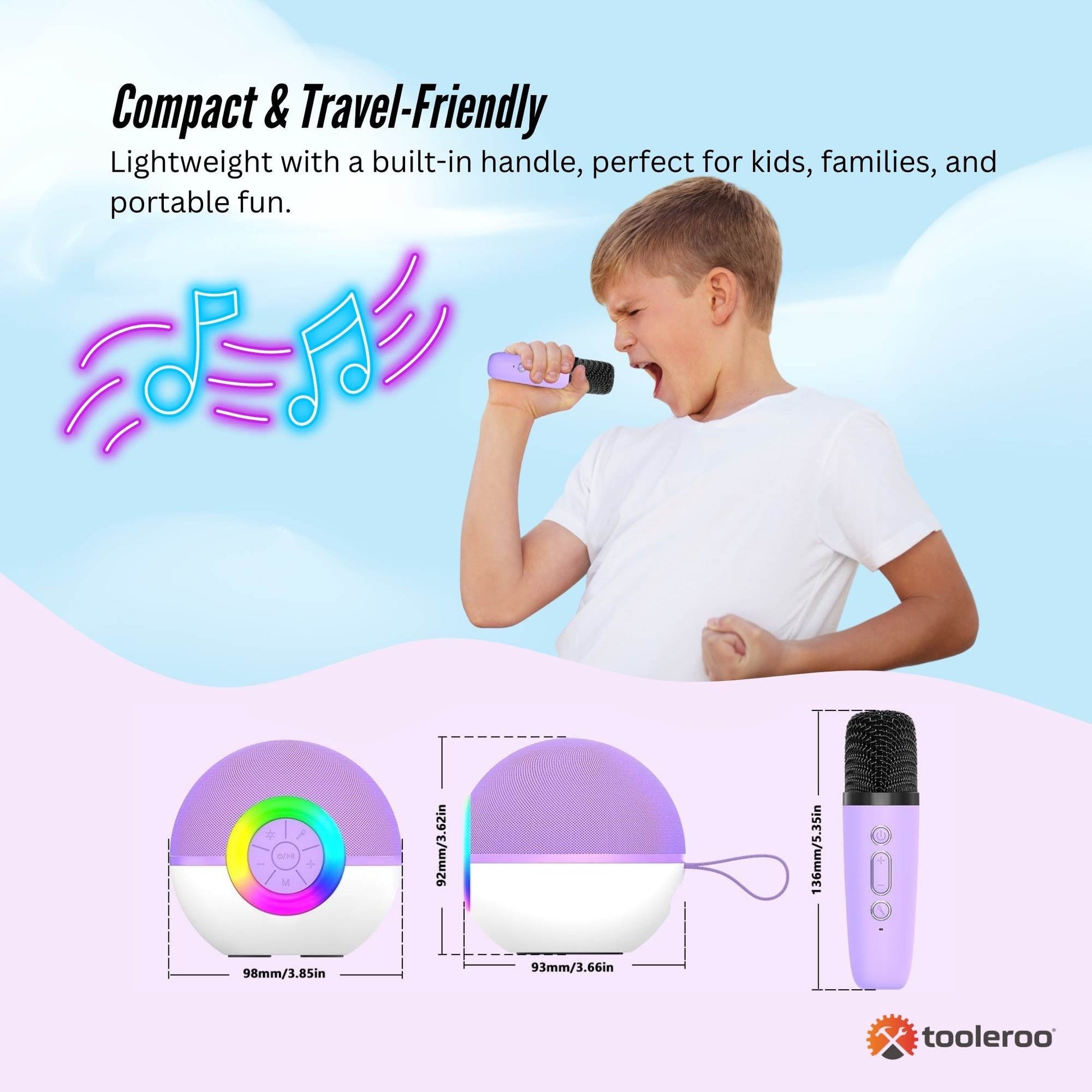Mini Karaoke Machine - 2x Wireless Microphones Portable Bluetooth Speaker Purple