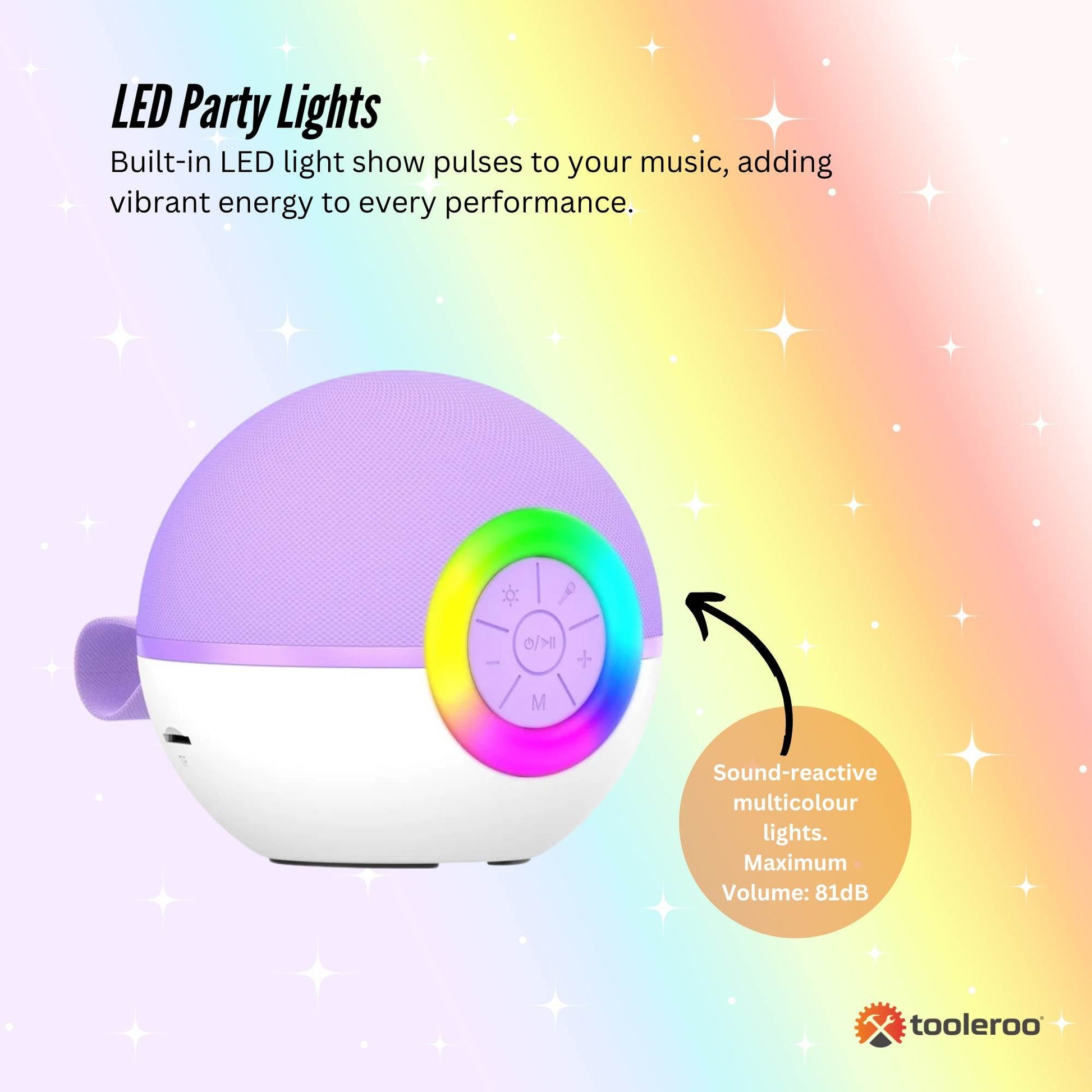 • LED Party Lights – Built-in LED light show pulses to your music, adding vibrant energy to every performance.