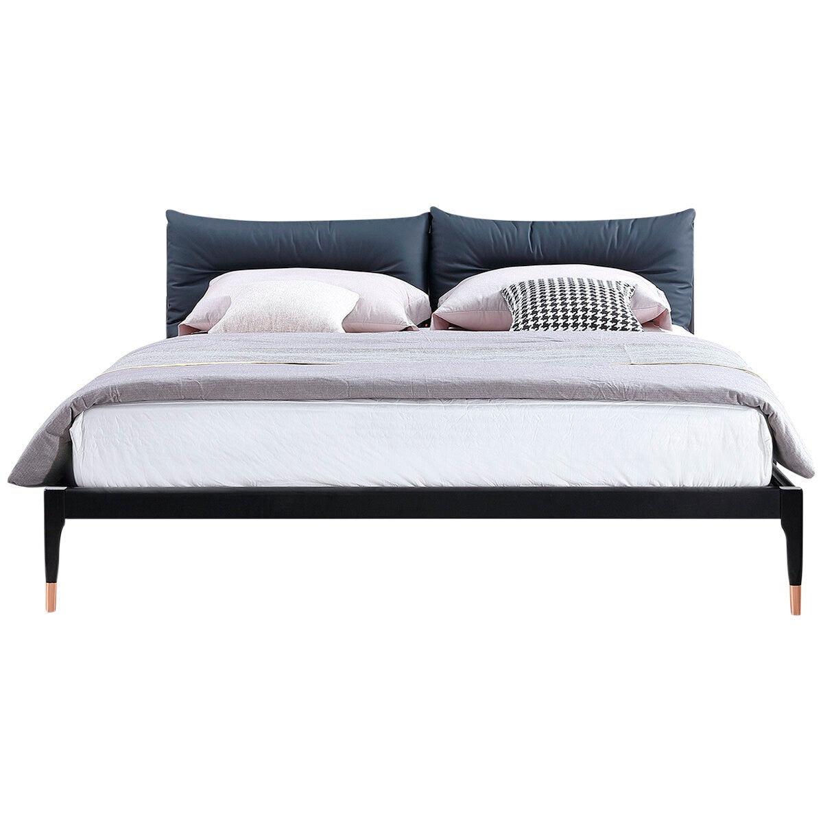 • Soft headrest cushioning and slim black painted timber bed frame