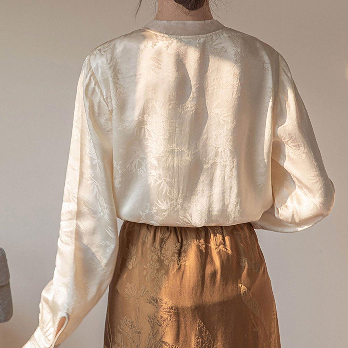 Elevate your wardrobe with this sophisticated long-sleeved shirt featuring a refined stand-up collar. Crafted from premium fabric, it combines comfort with refined elegance.