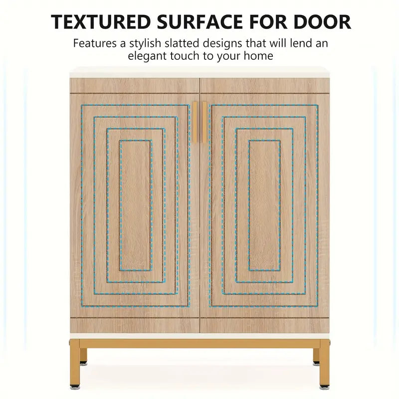 Measuring 31.5" W x 15" D x 30.3" H, this shoe rack saves valuable floor space while providing ample storage. The adjustable feet ensure the cabinet remains stable on any floor surface, preventing wobbling. The sleek golden door handle adds a warm touch and protects against scratches and injuries during use.